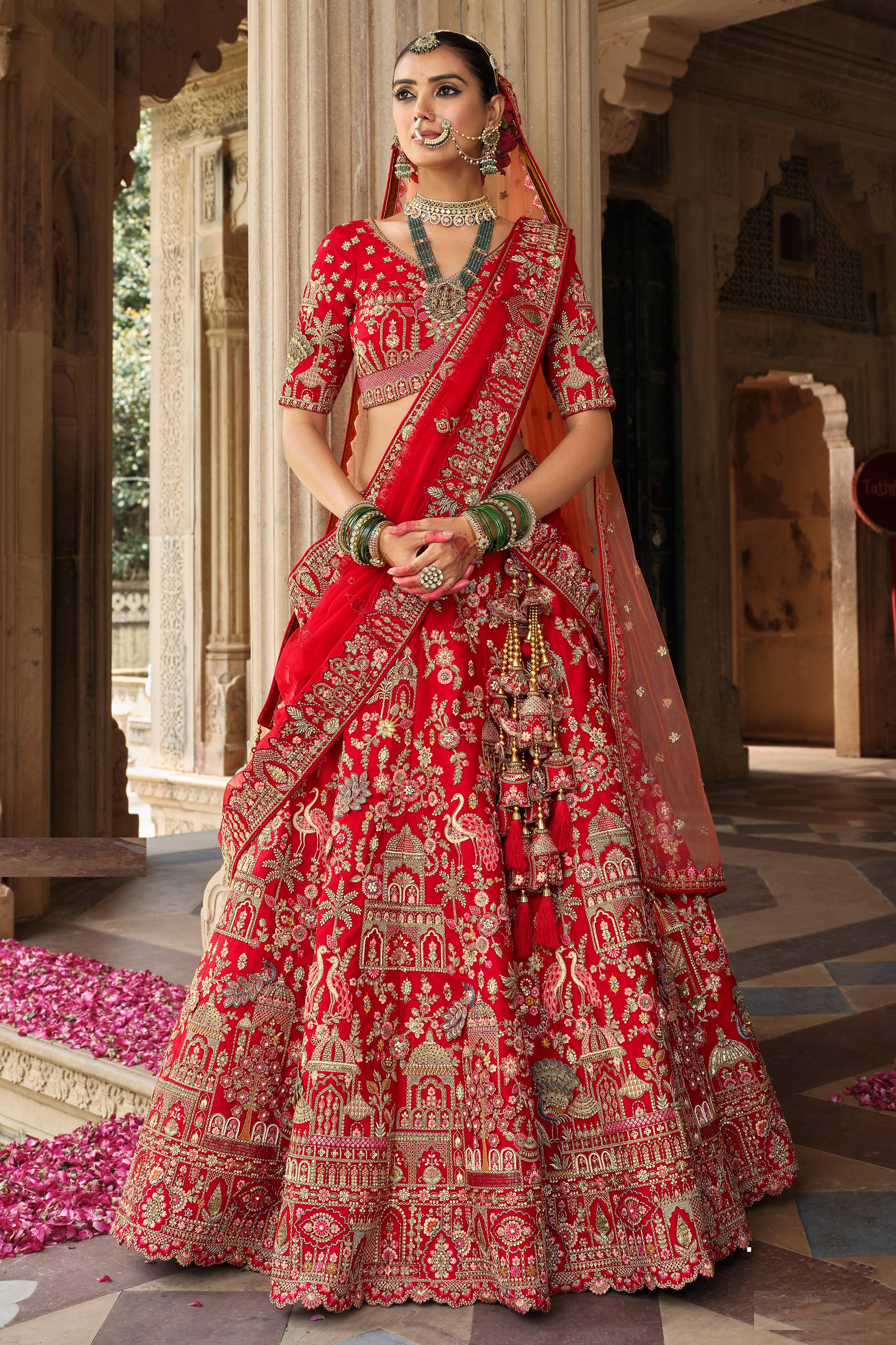 Elevate your wedding look with this stunning Silk Bridal Lehenga Set, complete with a beautifully crafted heavy embroidered blouse. Designed for brides who value tradition with a modern twist, this ensemble combines luxurious silk fabric with intricate detailing for an unmatched appearance. The vibrant colors and exceptional craftsmanship make this lehenga set ideal for weddings, receptions, or grand events. Its premium fabric ensures comfort throughout the day while enhancing your elegance. Transform your bridal wardrobe with this timeless creation that balances tradition and sophistication.