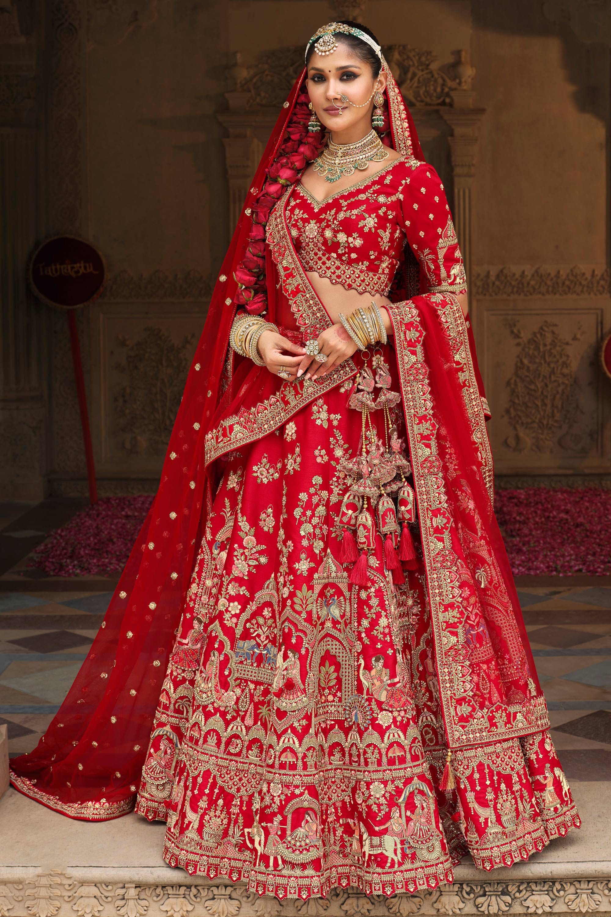Stunning Red Heavy Embroidered Bridal Lehenga Choli