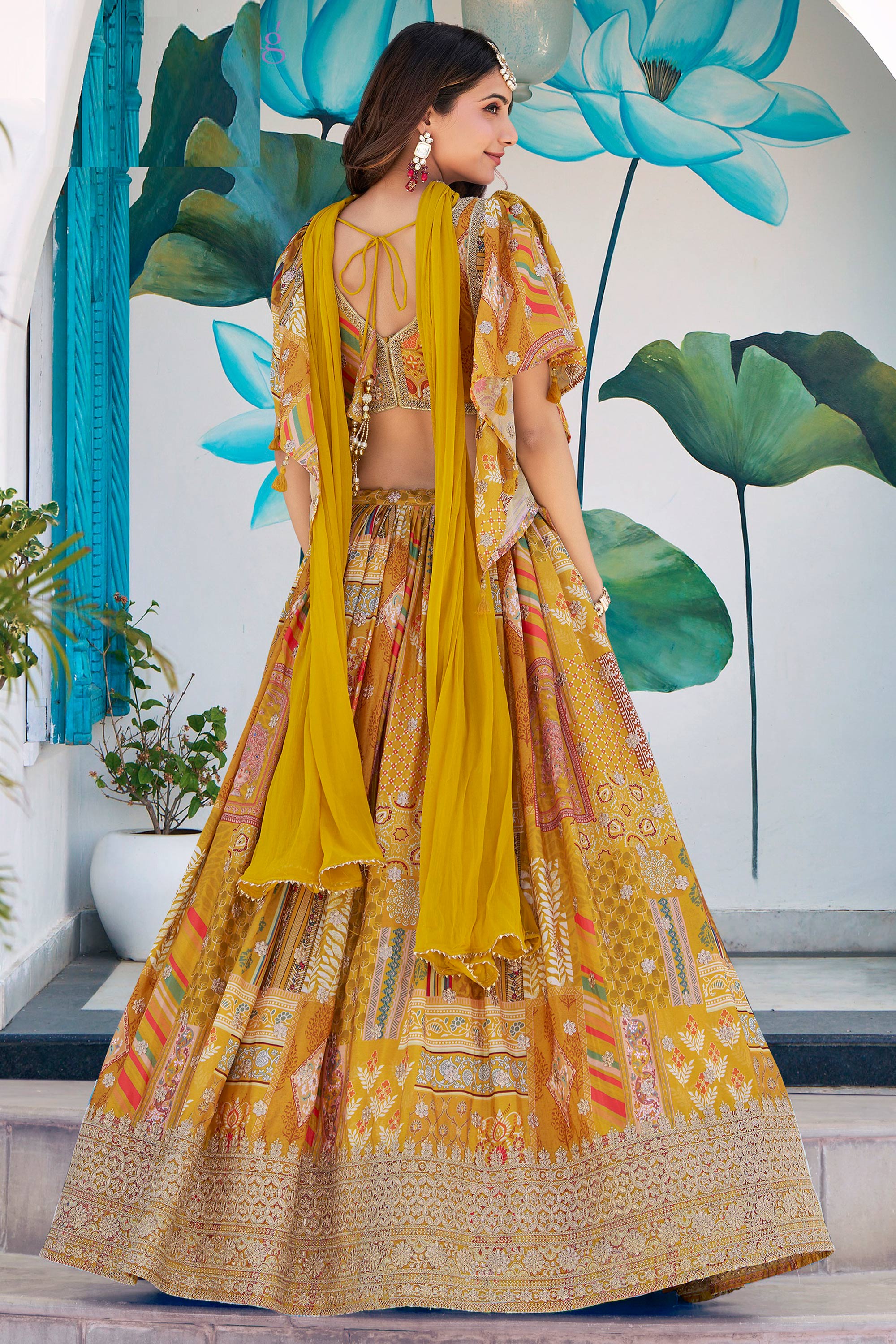 stylish Festive Look Yellow Chinon Fabric Lehenga Choli