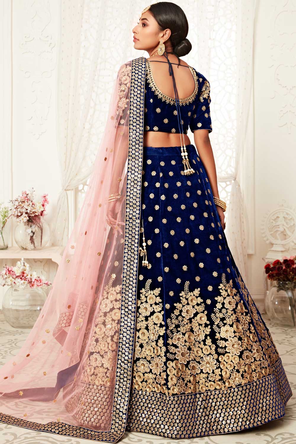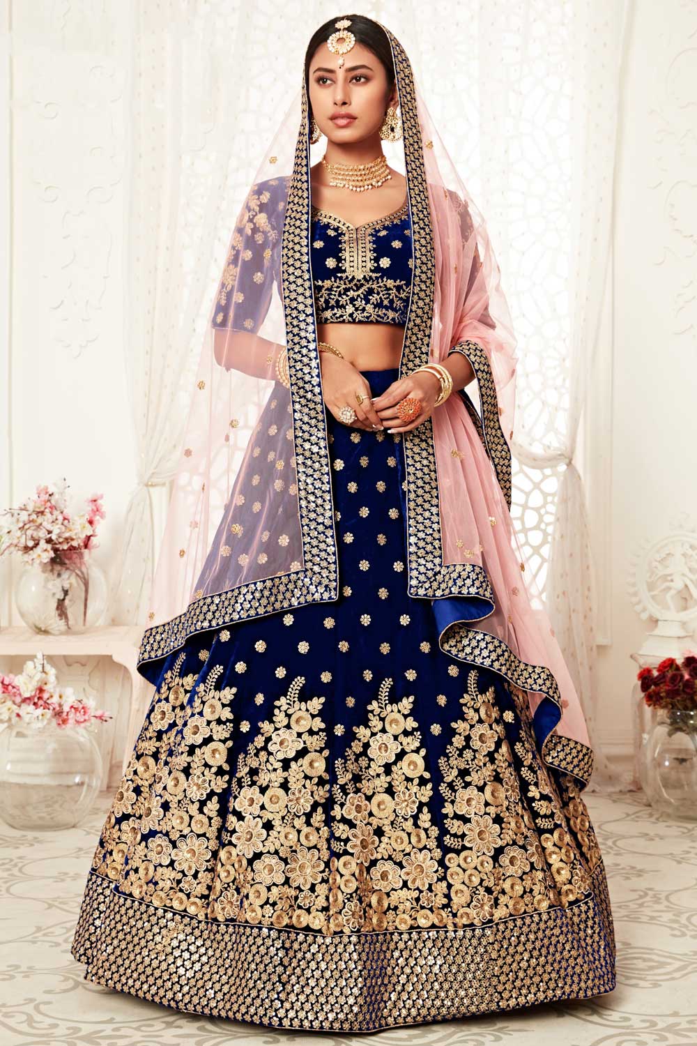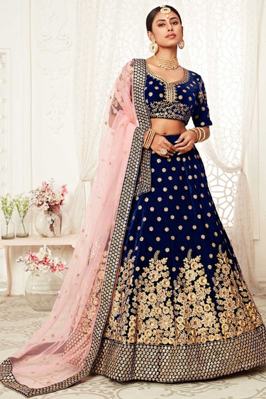 Velvet Fabric Blue Color Excellent Lehenga With Sequins Work