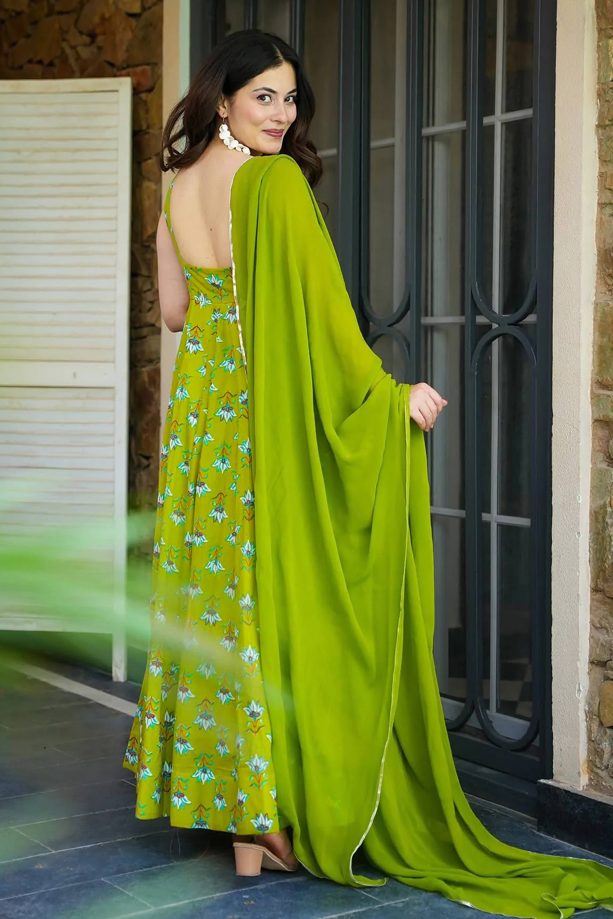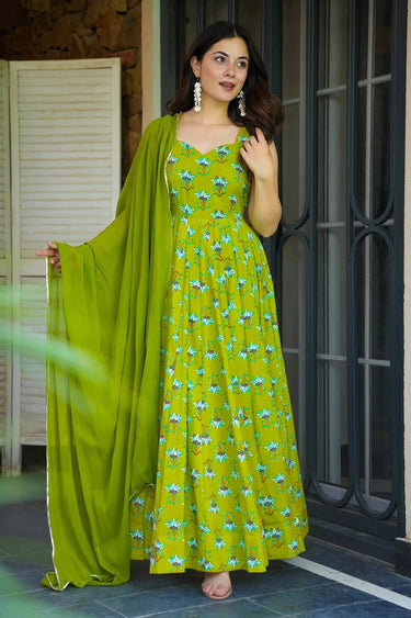 Green Digital Printed Readymade Anarkali Style Gown With Dupatta