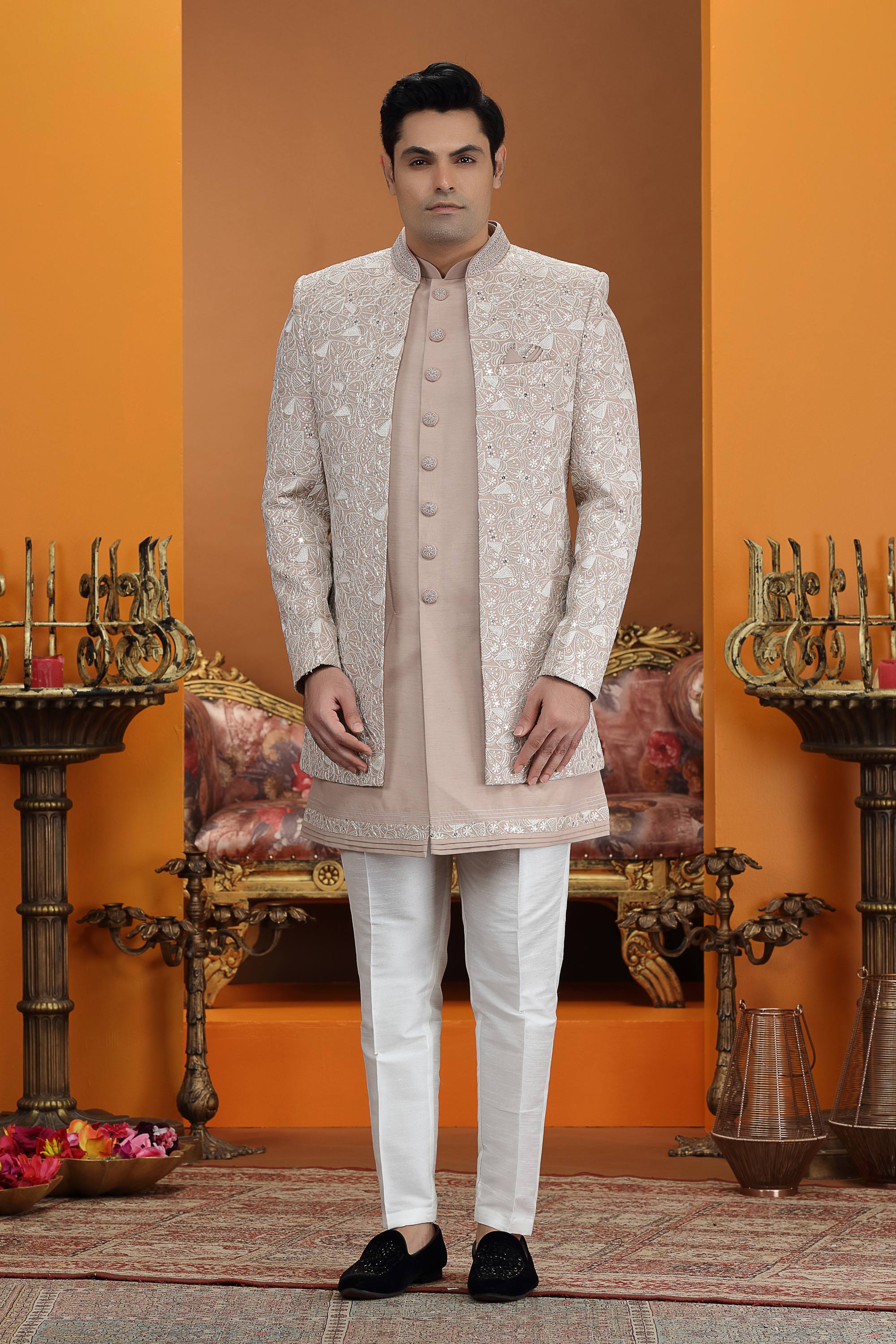 Peach Wedding Wear Art Silk Readymade Indo Western