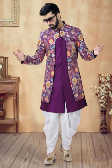 Purple Color Silk Fabric Designer Readymade Indo Western