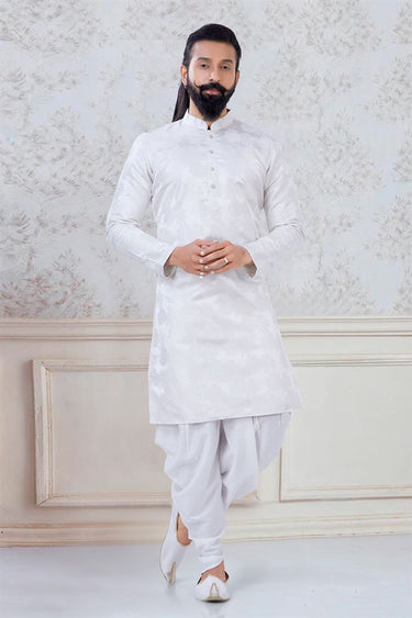 Artistic White Color Jacquard Fabric Sangeet Wear Trendy Readymade Dhoti Style Kurta Pyjama For Men