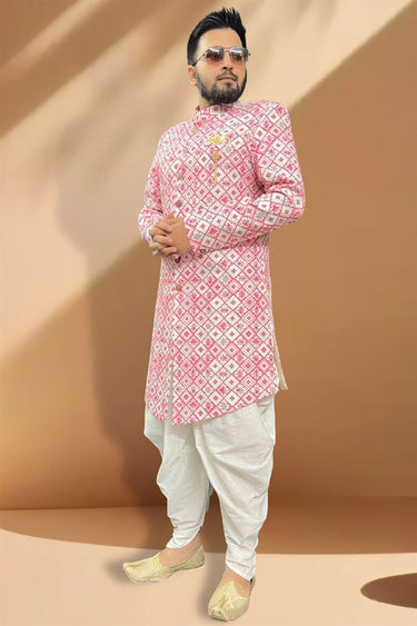 Blissful Pink Color Silk Fabric Peshawari Style Indo Western Set