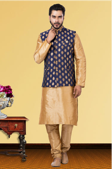 Cream Pretty Dhupion Raw Silk Fabric Sangeet Wear Readymade Men Kurta Pyjama With Jacket