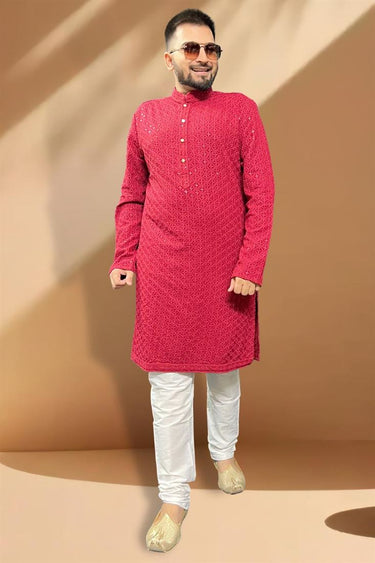 Fetching Red Rayon Fabric Sangeet Wear Kurta Pyjama For Men