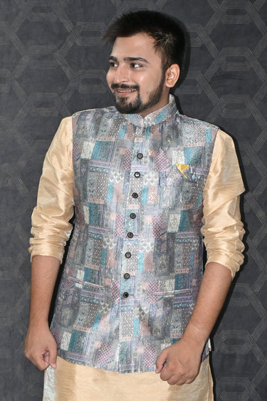 Gorgeous Art Silk Fabric Reception Wear Readymade Men Grey Color Jacket