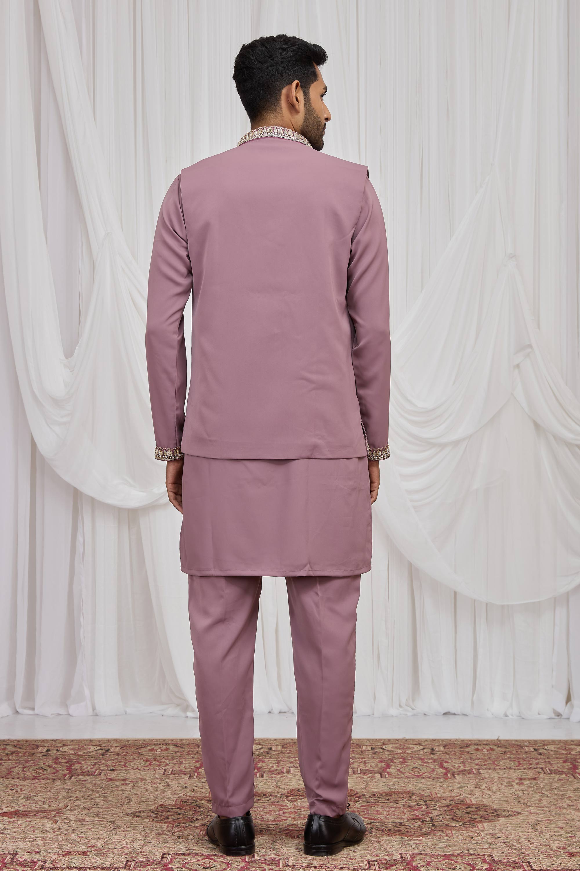 Pink Function Wear Fancy Fabric Readymade Kurta Pyjama With Jacket For Men
