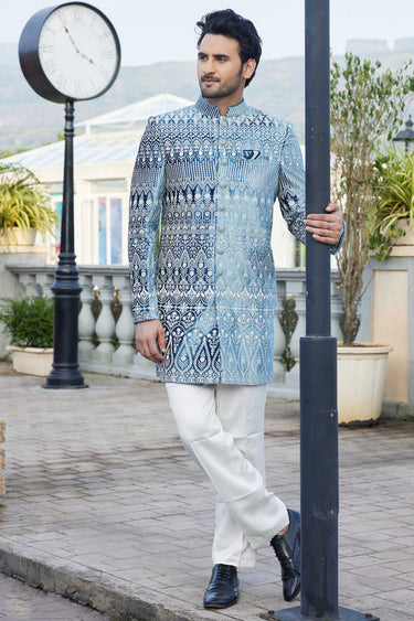 Elevate your style with this impeccably tailored Indo Western, perfect for weddings, functions, and sangeet. Featuring a royal jacket, a complementing kurta, and trousers, this ensemble blends tradition with modern sophistication. Note: Slight color variations may occur due to digital photography. Make every celebration unforgettable with timeless charm!