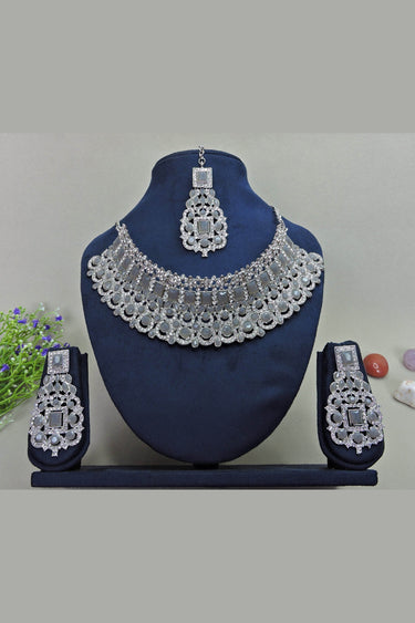 Bewitching Alloy Necklace With Earrings and Mang Tikka In Grey Color