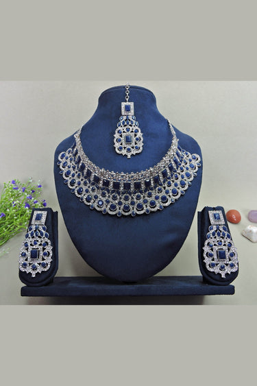 Blue Color Excellent Alloy Necklace With Earrings and Mang Tikka