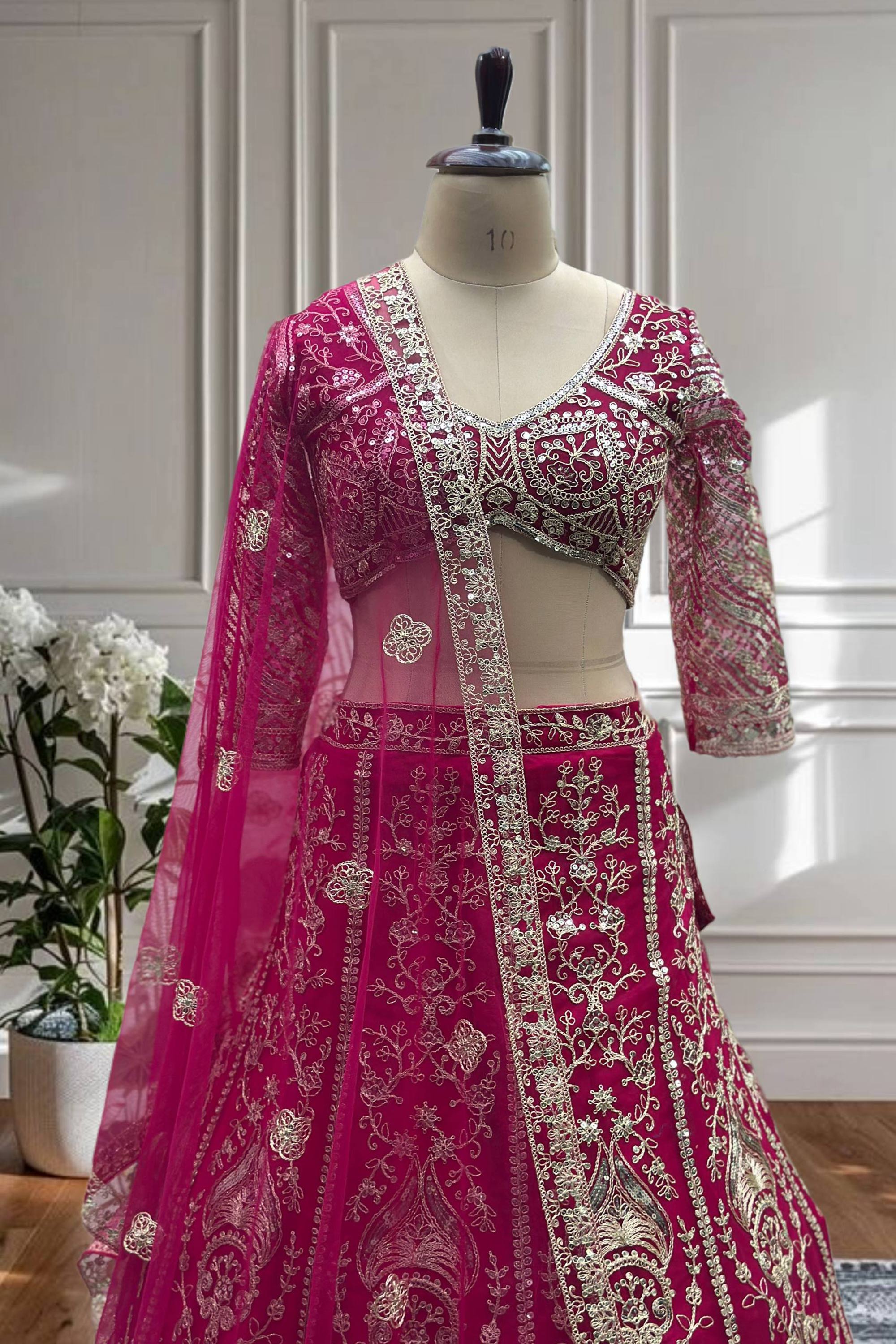 Upgrade your wardrobe with this graceful Net Embroidered Lehenga Choli. With its intricately embroidered patterns and modern touch, this outfit strikes the perfect balance between tradition and style. Crafted from lightweight net fabric, it drapes beautifully, making it a fantastic choice for any celebration or cultural gathering. The matching choli offers a fitted look with detailed designs, while the soft net dupatta adds an elegant finish. Wear this stunning ensemble to leave a lasting impression at family gatherings or festivals. Complete your outfit with a clutch and metallic bangles for added glamour.