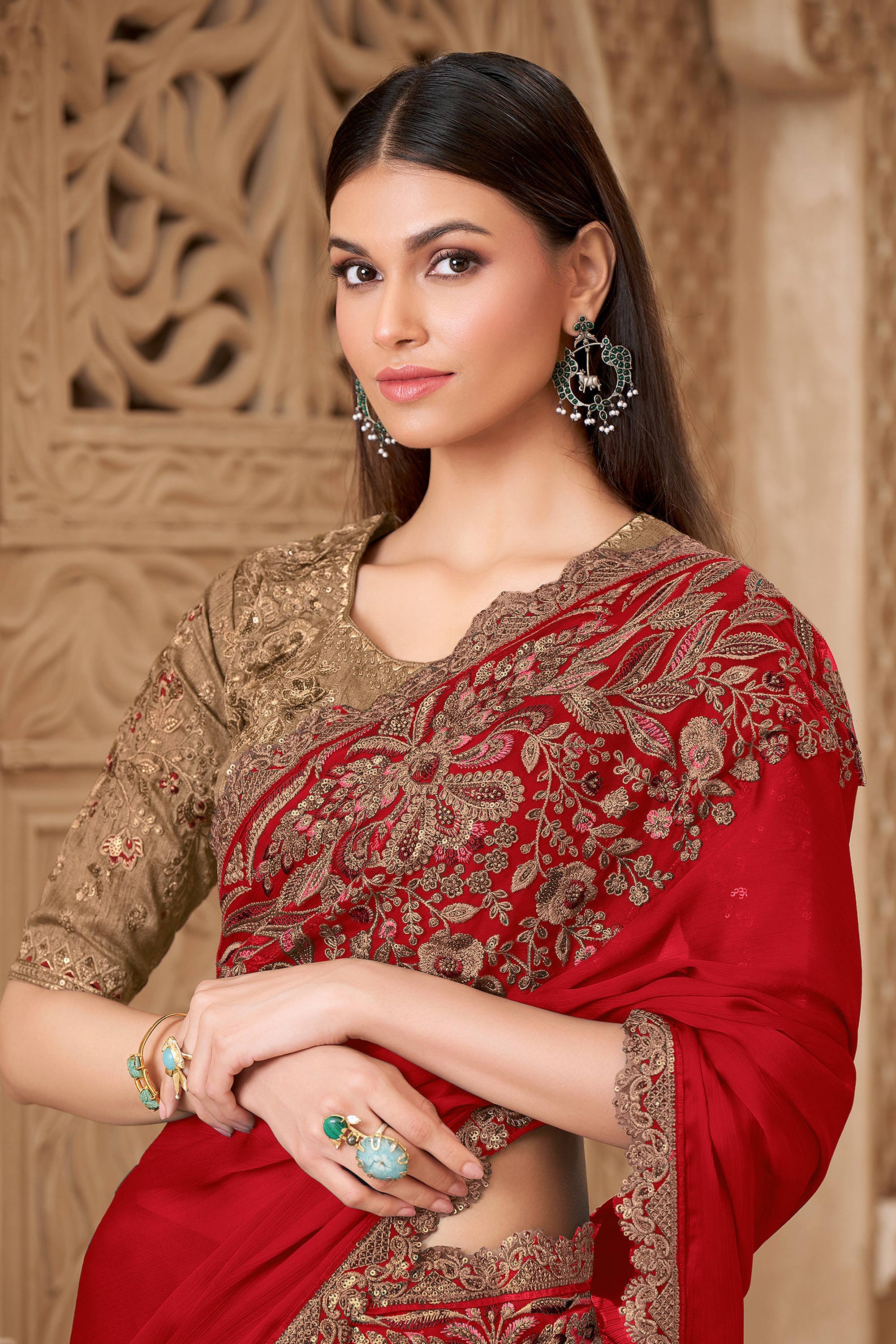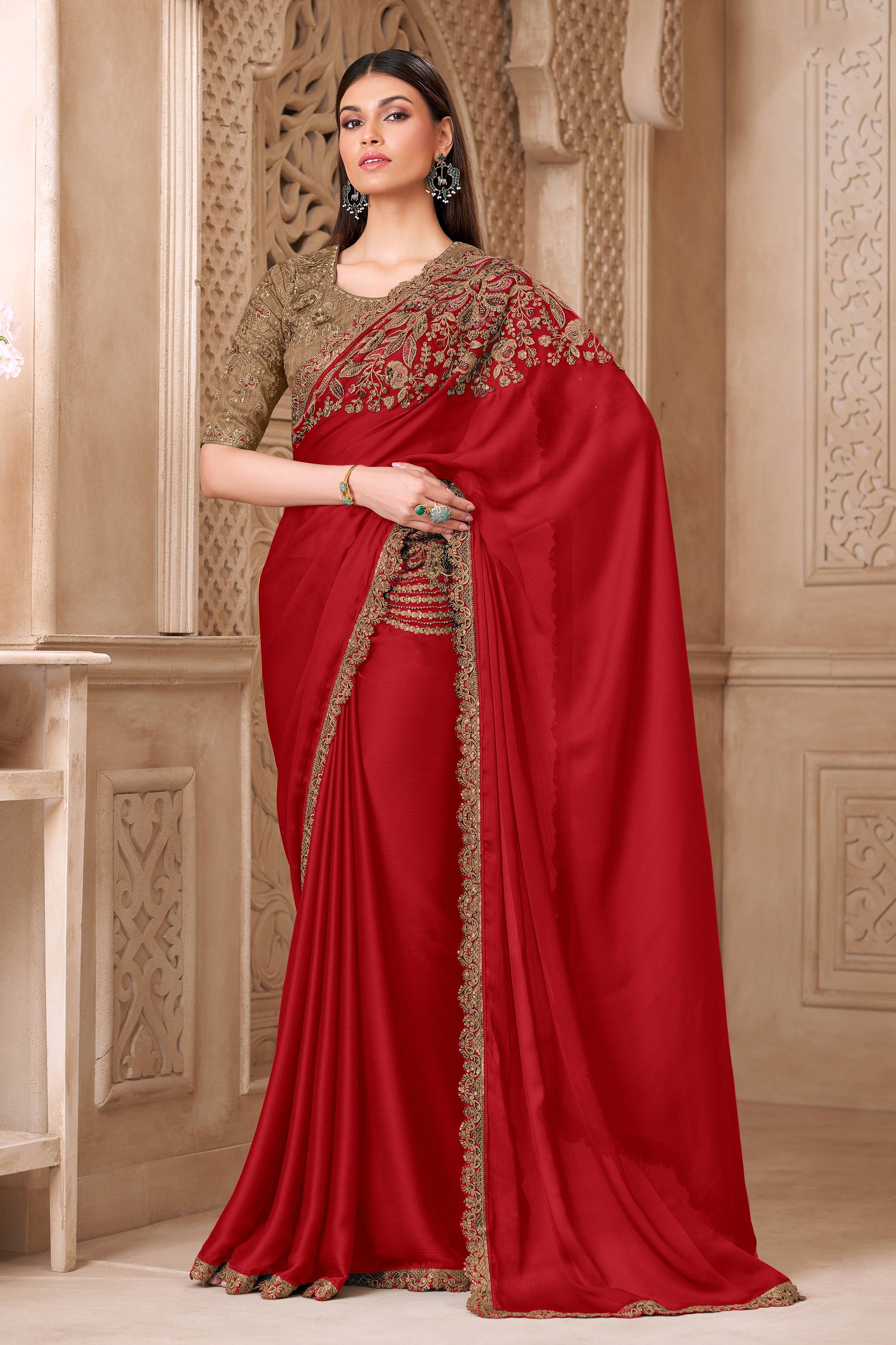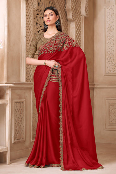 Embroidered Art Silk Fabric Red Party Wear Saree