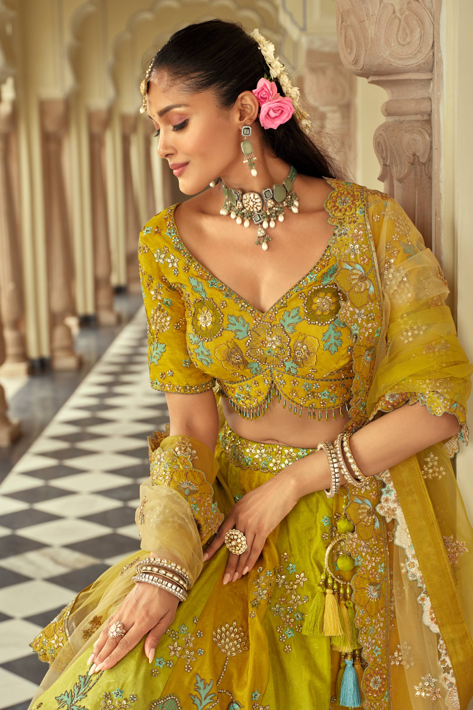 Green Heavy Embroidered Designer Readymade Lehenga Choli