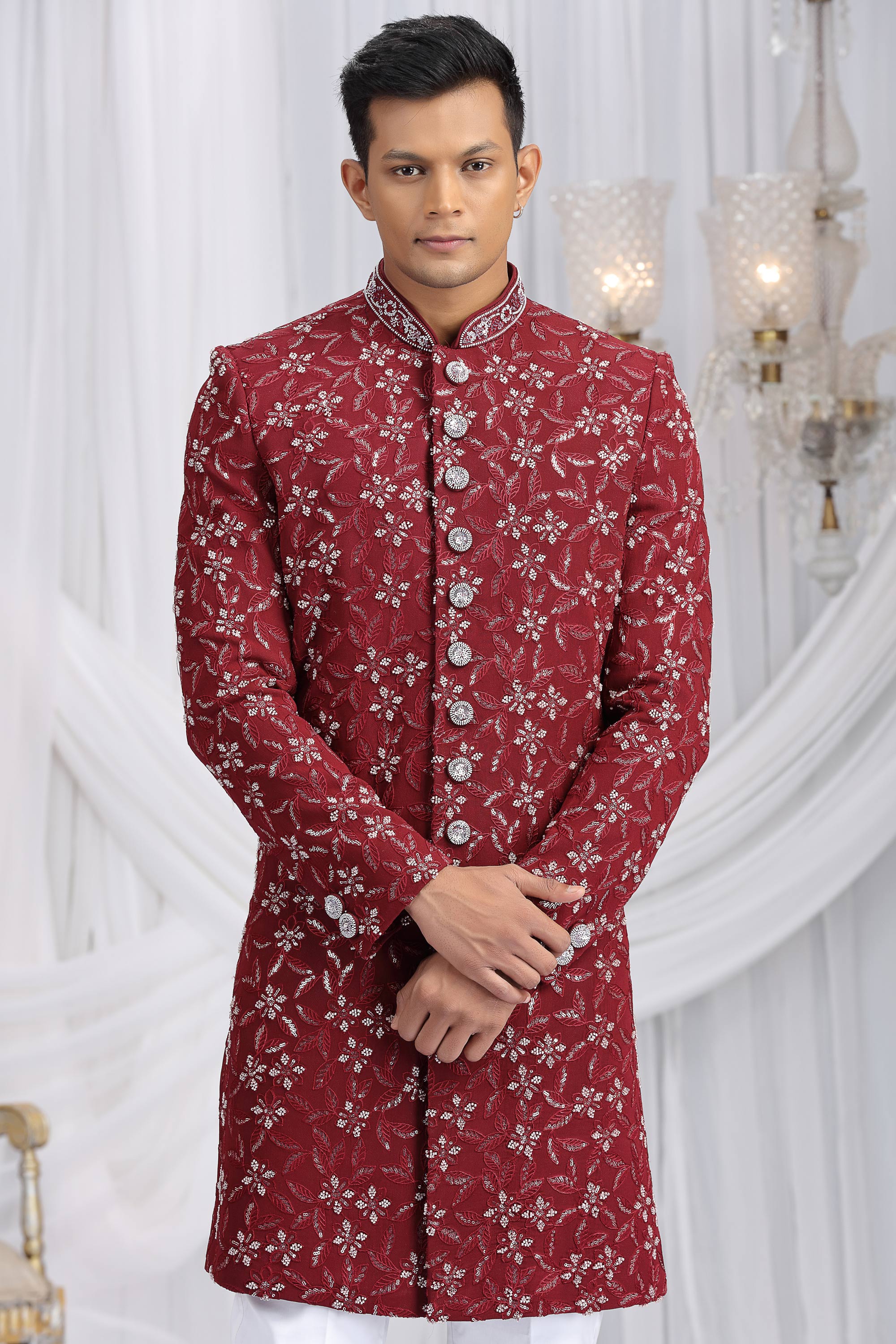 Maroon Art Silk Fabric Readymade Indo Western For Men