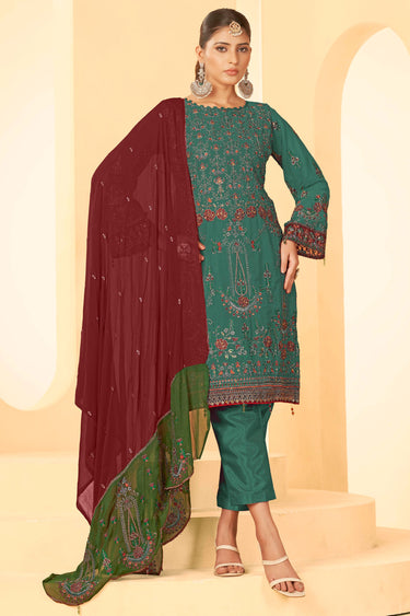 Party Style Teal Green Color Inventive Pakistani Replica Suit In Georgette Fabric