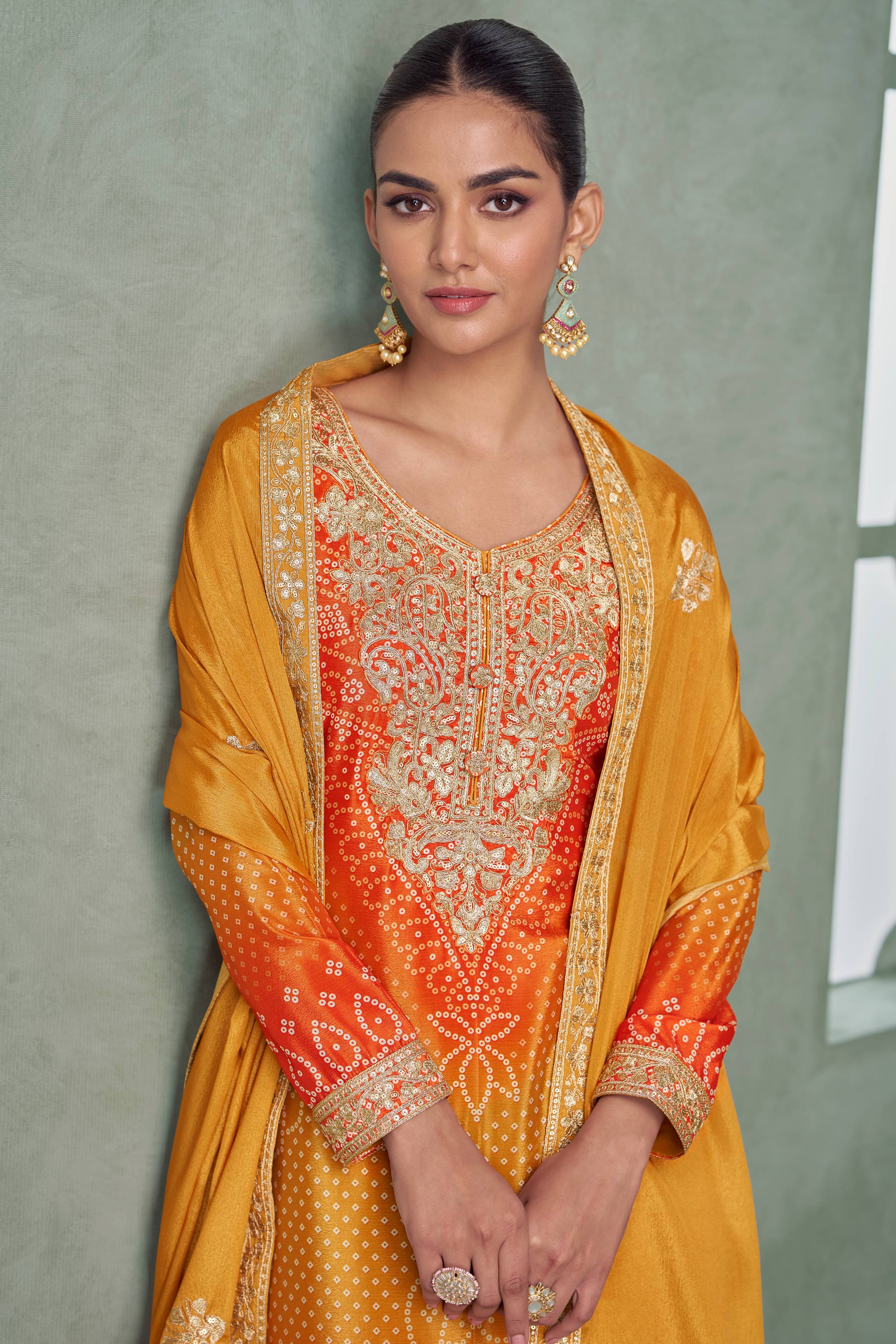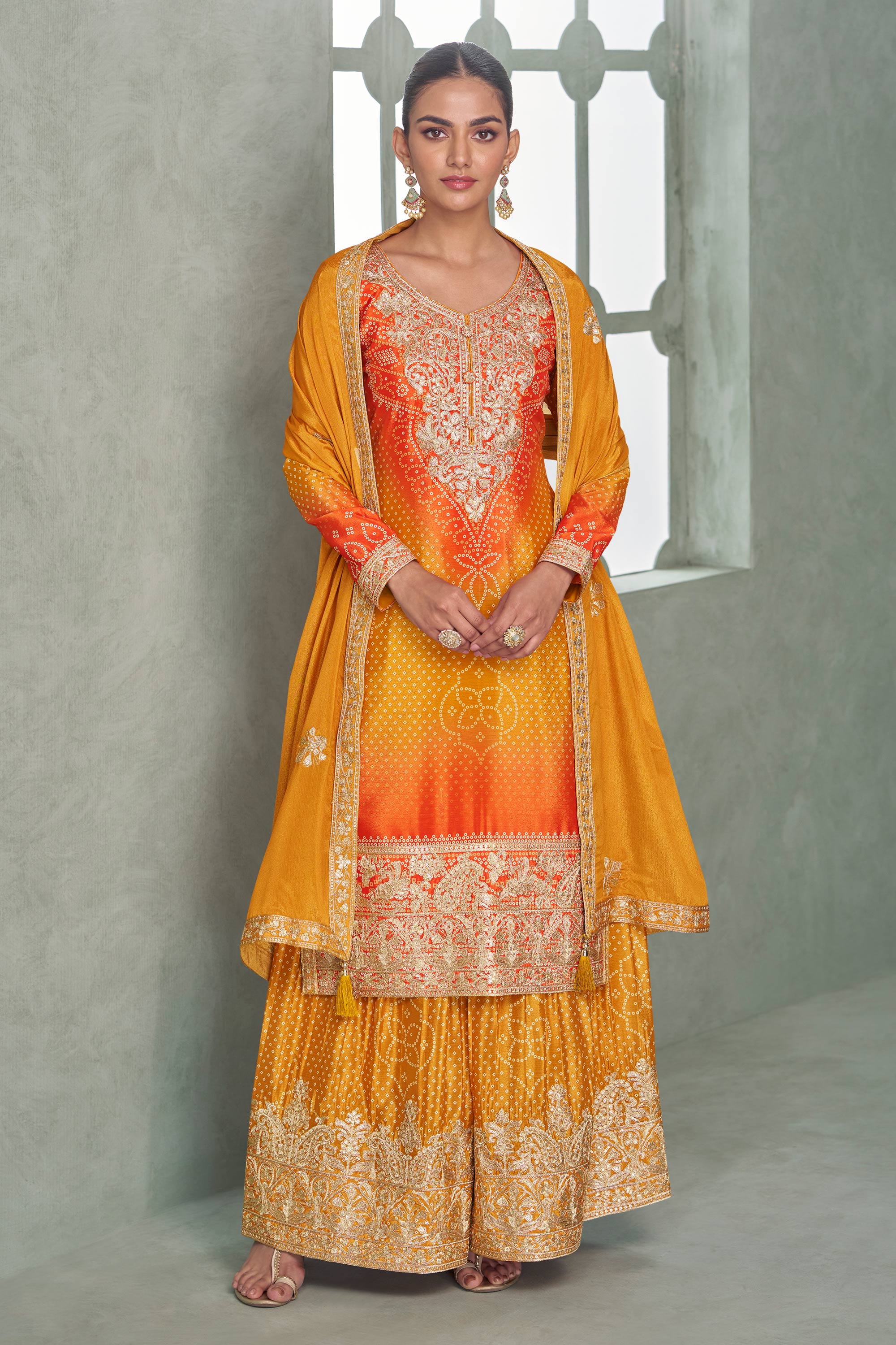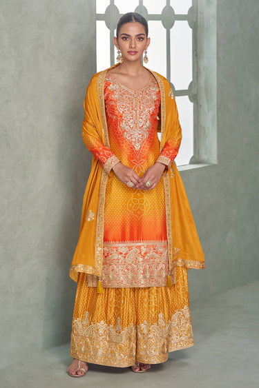 Chinon Silk Embroidered Readymade Palazzo Kurta Set