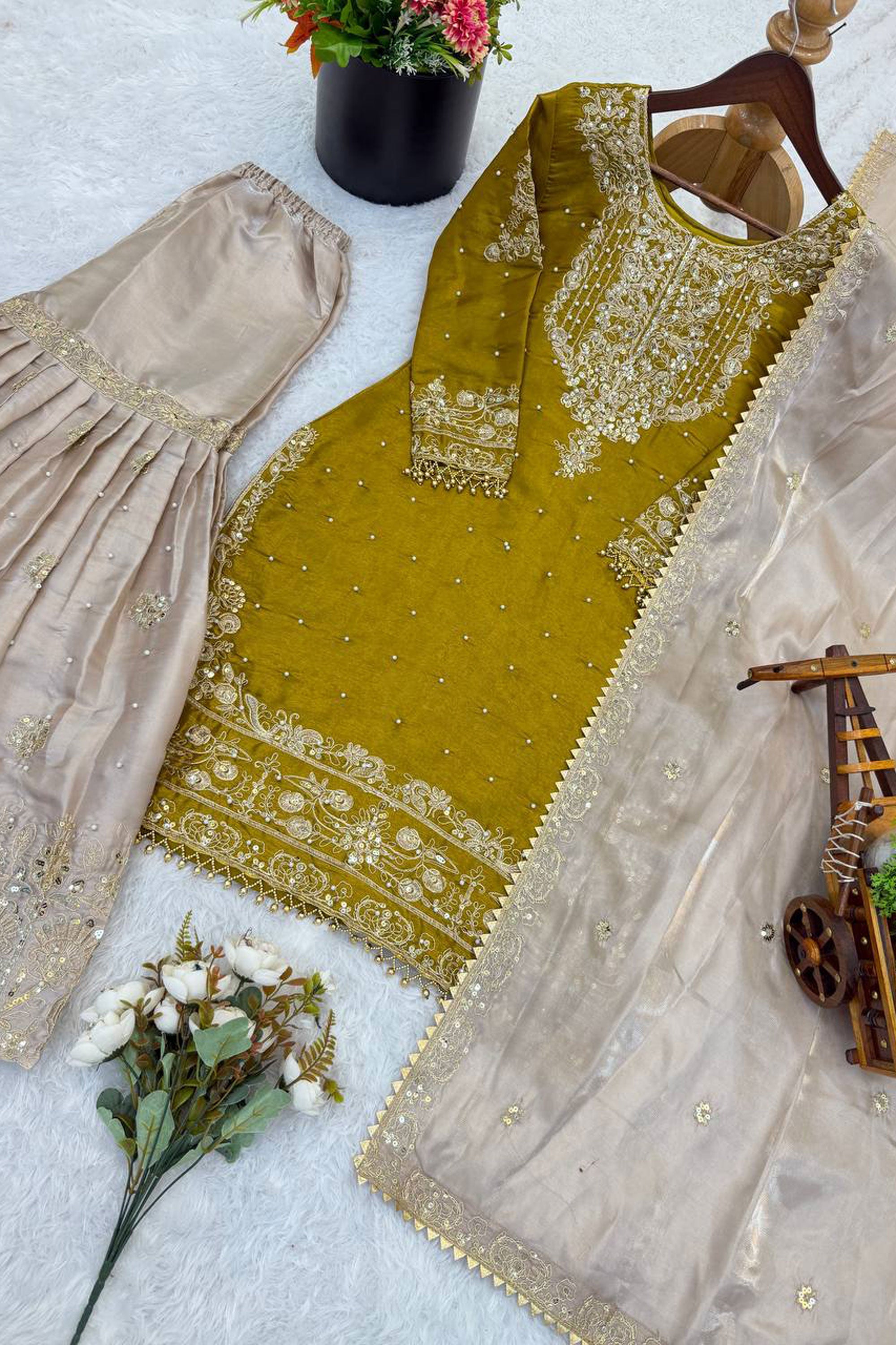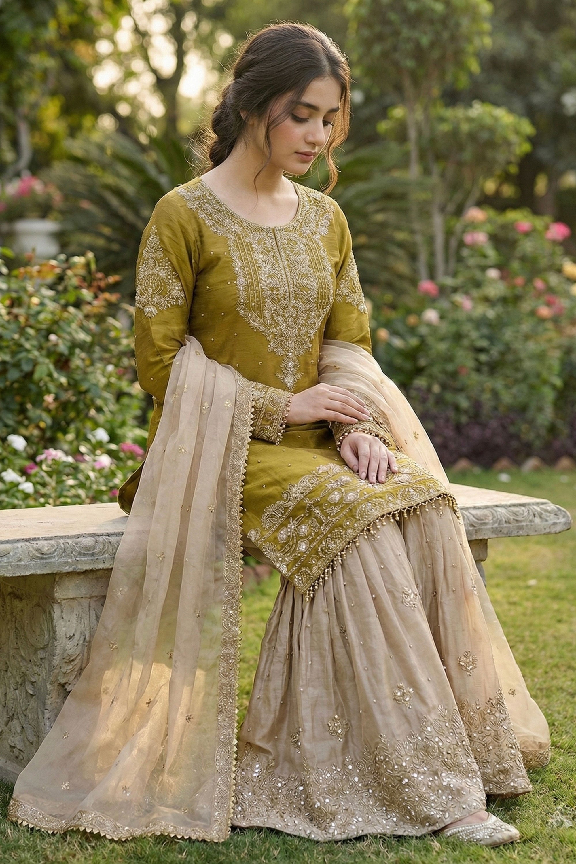 Our skilled artisans meticulously craft each attire with care, but outfits adorned with beads and sequins require delicate handling. Some beads or sequins may naturally loosen over time, but this does not affect the overall look of the outfit. Embrace the sparkle and wear it with confidence!