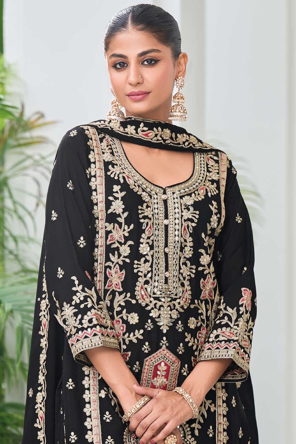Black Color Chinon Fabric Trendy Readymade Palazzo Suit