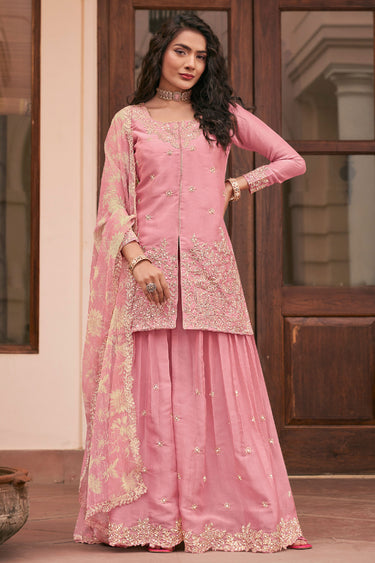 Heavy Art Silk Fabric Pink Color Readymade Palazzo Suit