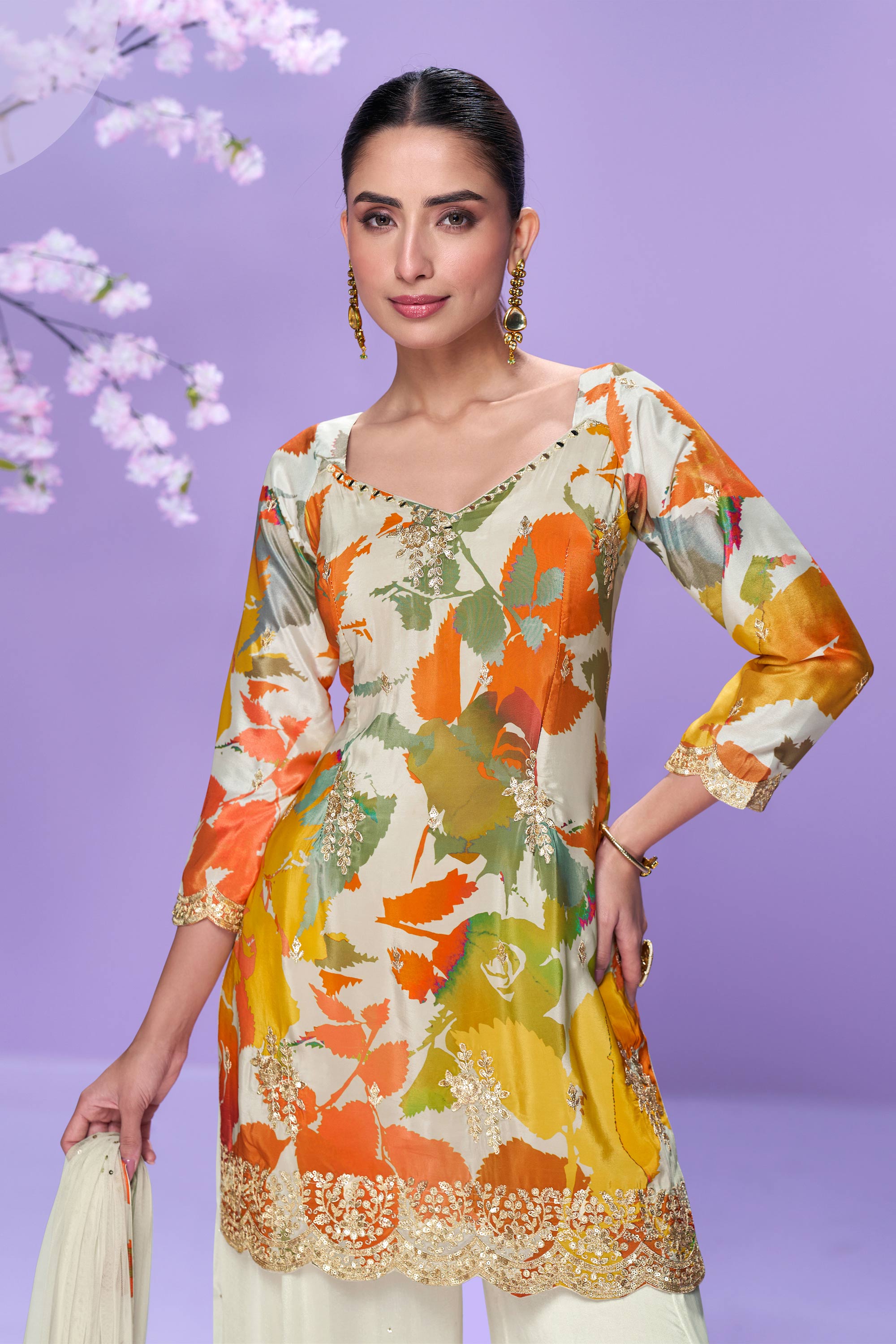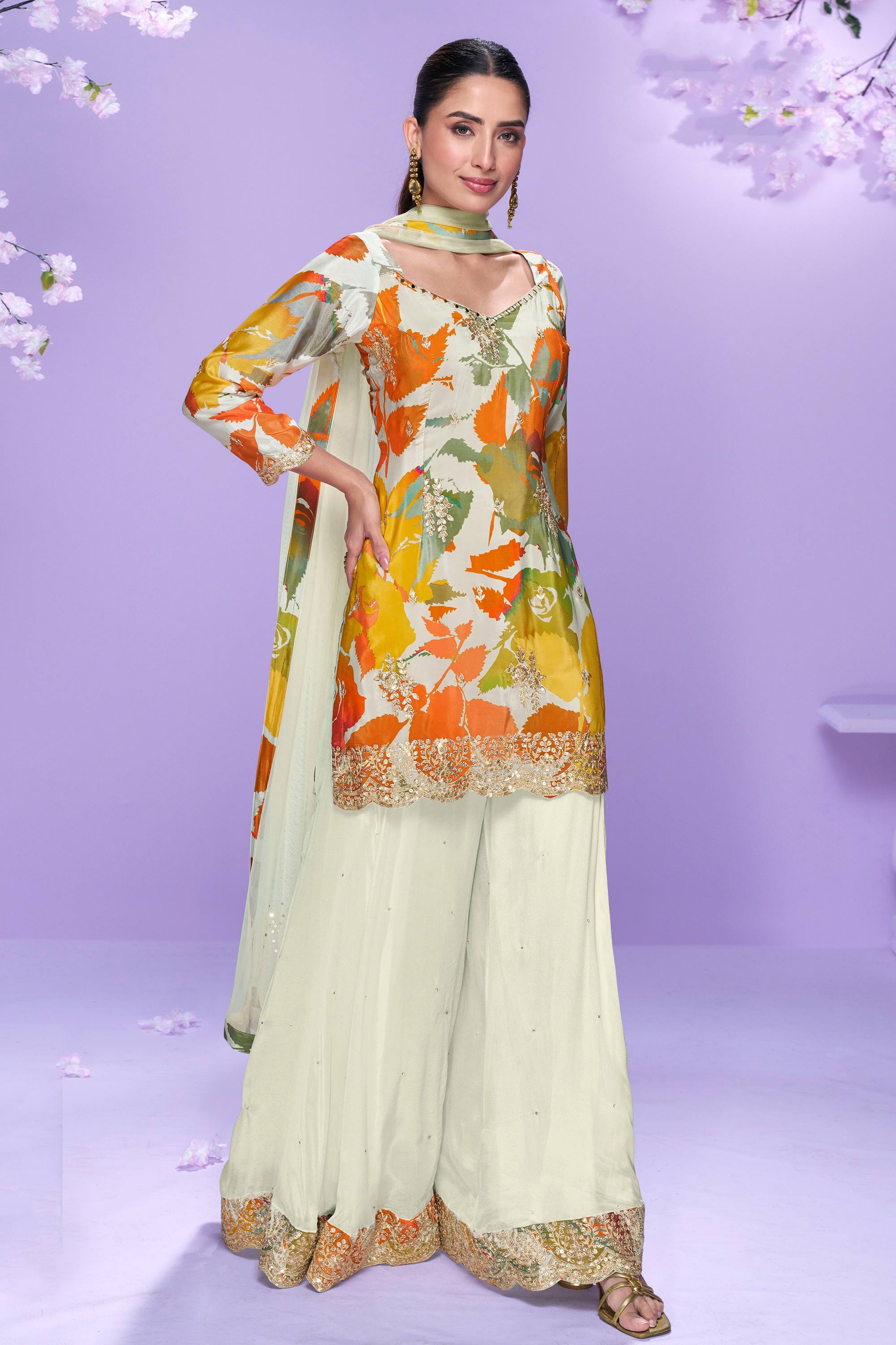 Multi Color Festive Wear Chinon Digital Printed Readymade Palazzo Suit