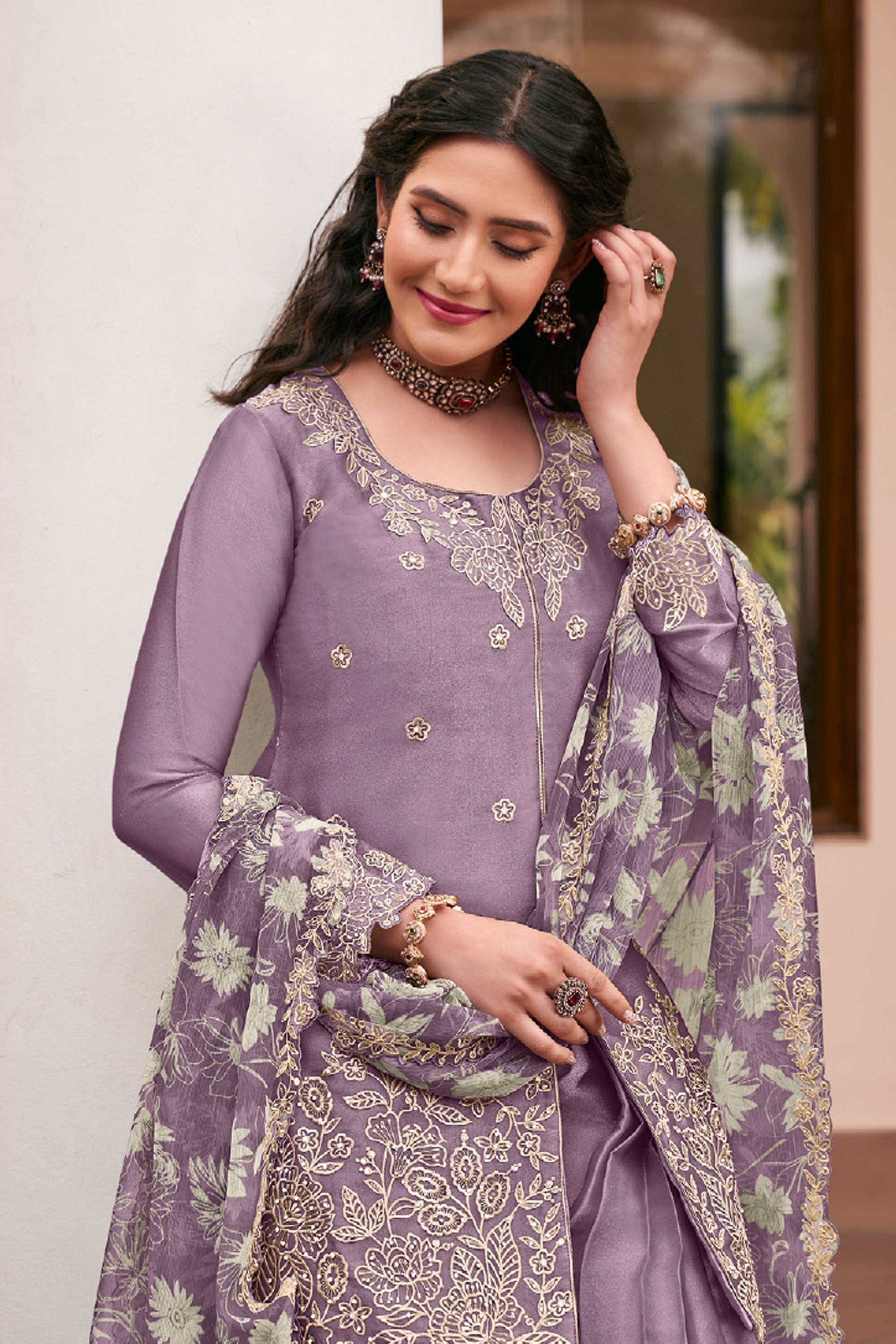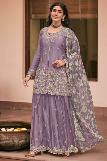 Purple Color Exquisite Readymade Palazzo Suit In Art Silk Fabric