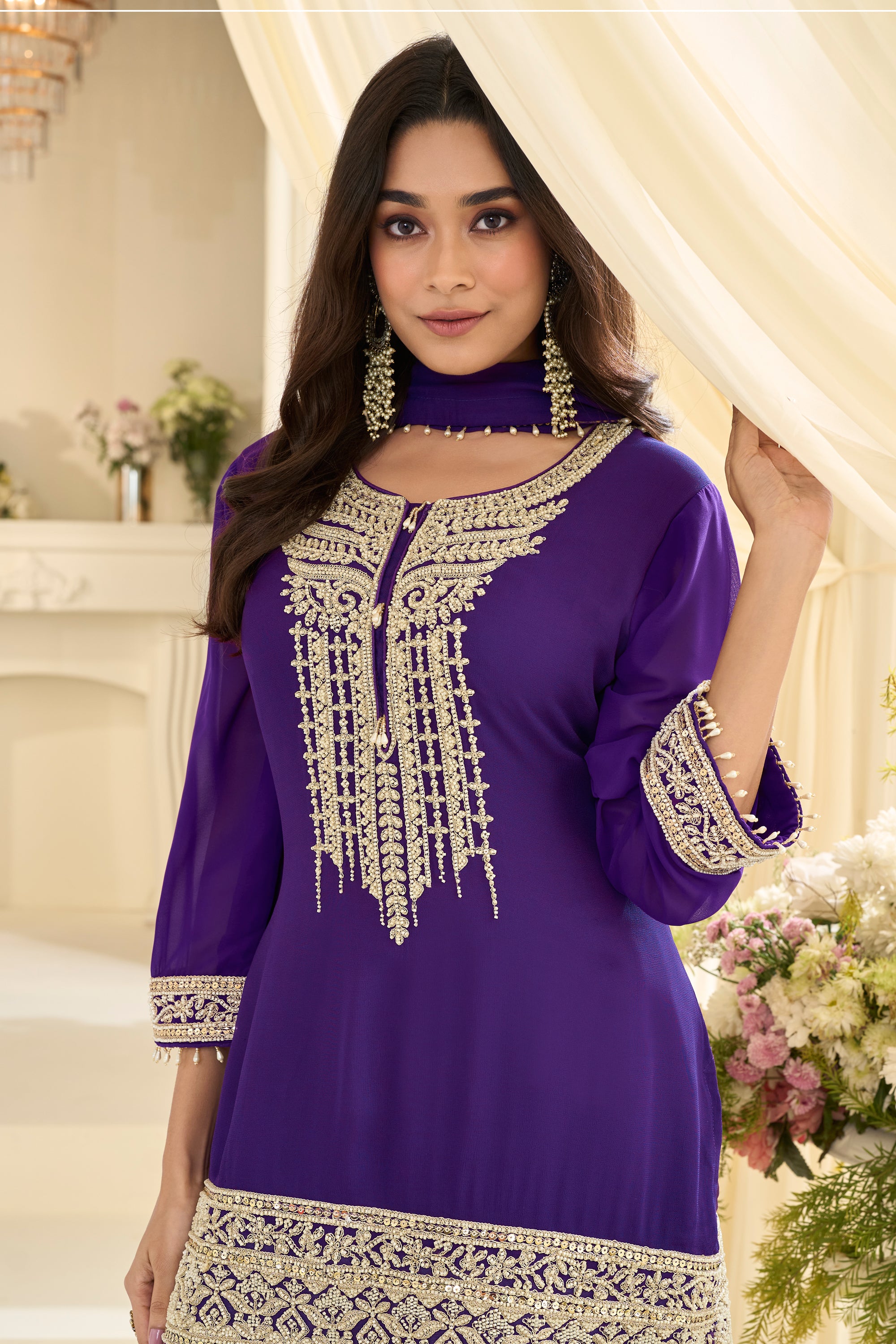 Purple Georgette Designer Readymade Palazzo Salwar Kameez