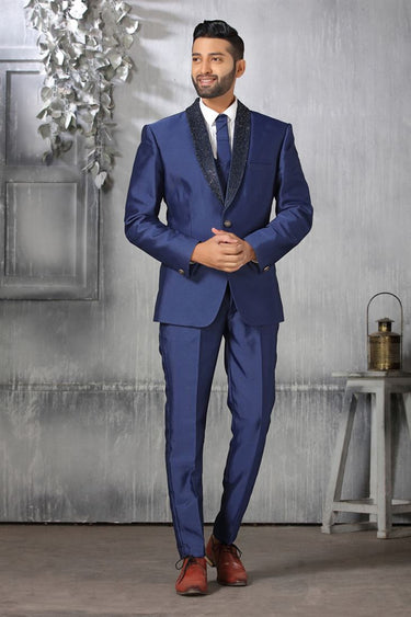 Rayon Fabric Bewitching Party Look Coat Suit In Blue Color