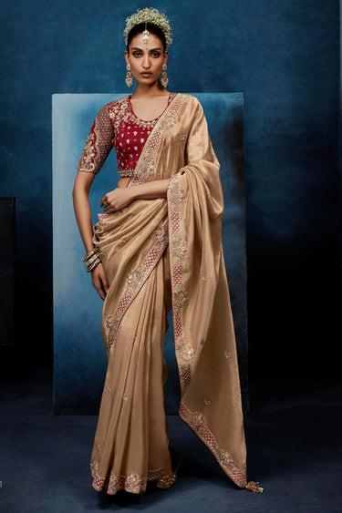 Fabulous Art Silk Fabric Beige Color Party Style Saree