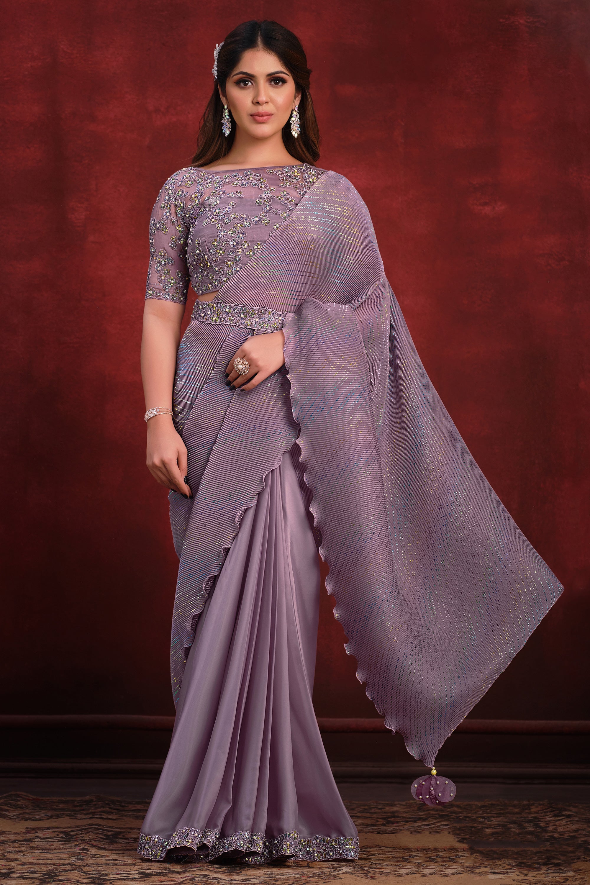 Purple Satin Silk Ready To Wear Saree