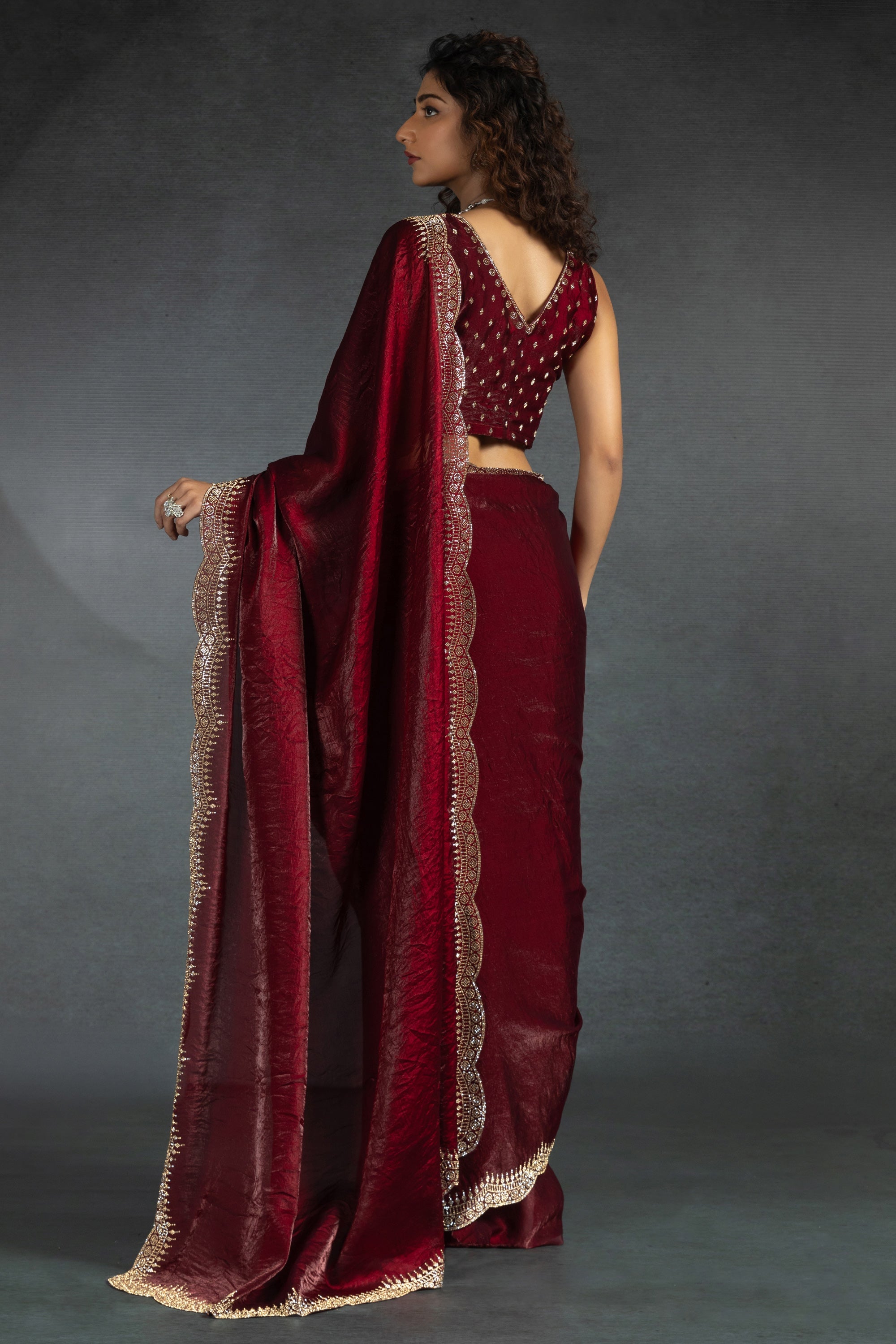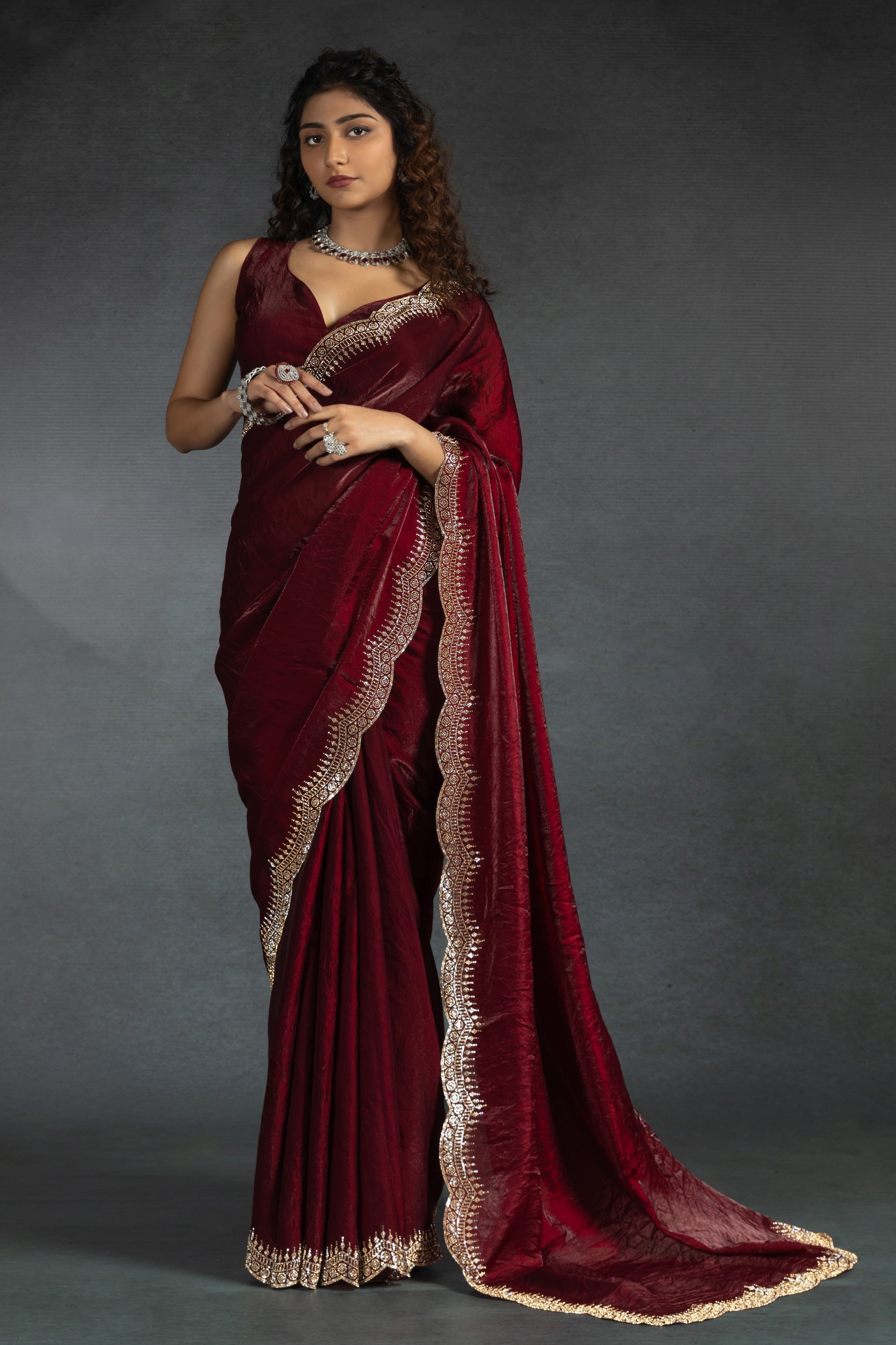 Elevate your evening attire with this exquisite satin silk saree. Crafted for elegance, this saree features an intricate stone border that adds a touch of luxury to its already sumptuous texture. The rich color exudes sophistication, making it the perfect choice for any special occasion. Drape yourself in the opulent satin silk and experience comfort along with style. Ideal for parties, weddings, or festive celebrations, this saree is designed to make you the center of attention.