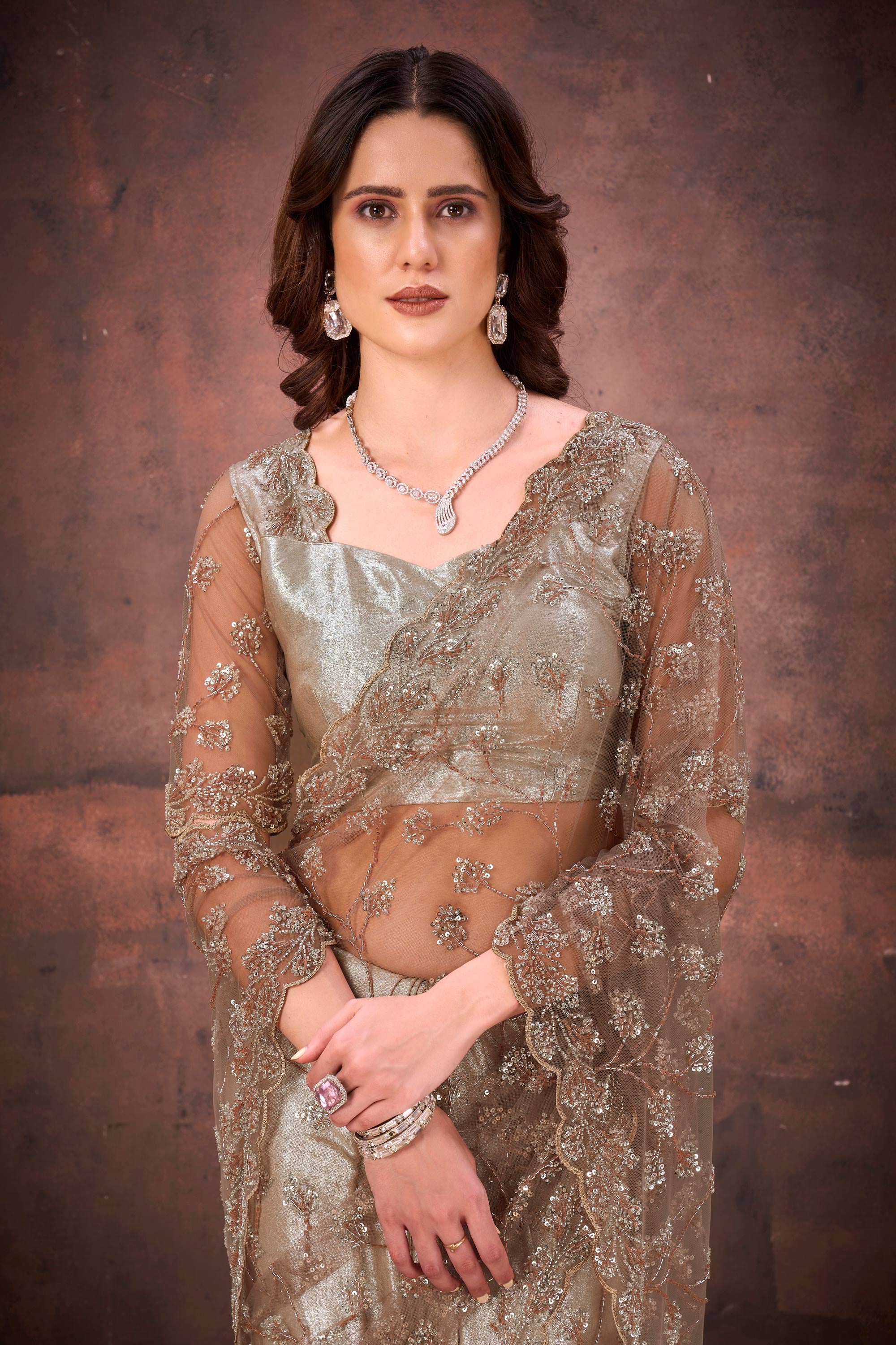Elevate your style with the Reach Color Party Wear Saree With Heavy Readymade Designer Blouse. This stunning saree is ideal for grand celebrations, making you the center of attention at any gathering. Featuring exquisite patterns and premium craftsmanship, the saree’s rich design reflects both tradition and modernity. The readymade blouse comes pre-fitted, allowing for a hassle-free dressing experience. Perfectly suited for parties, cultural events, or any special occasion, this ensemble is all about blending sophistication with comfort. Feel confident and radiant as you step into your next event wearing this must-have outfit.
