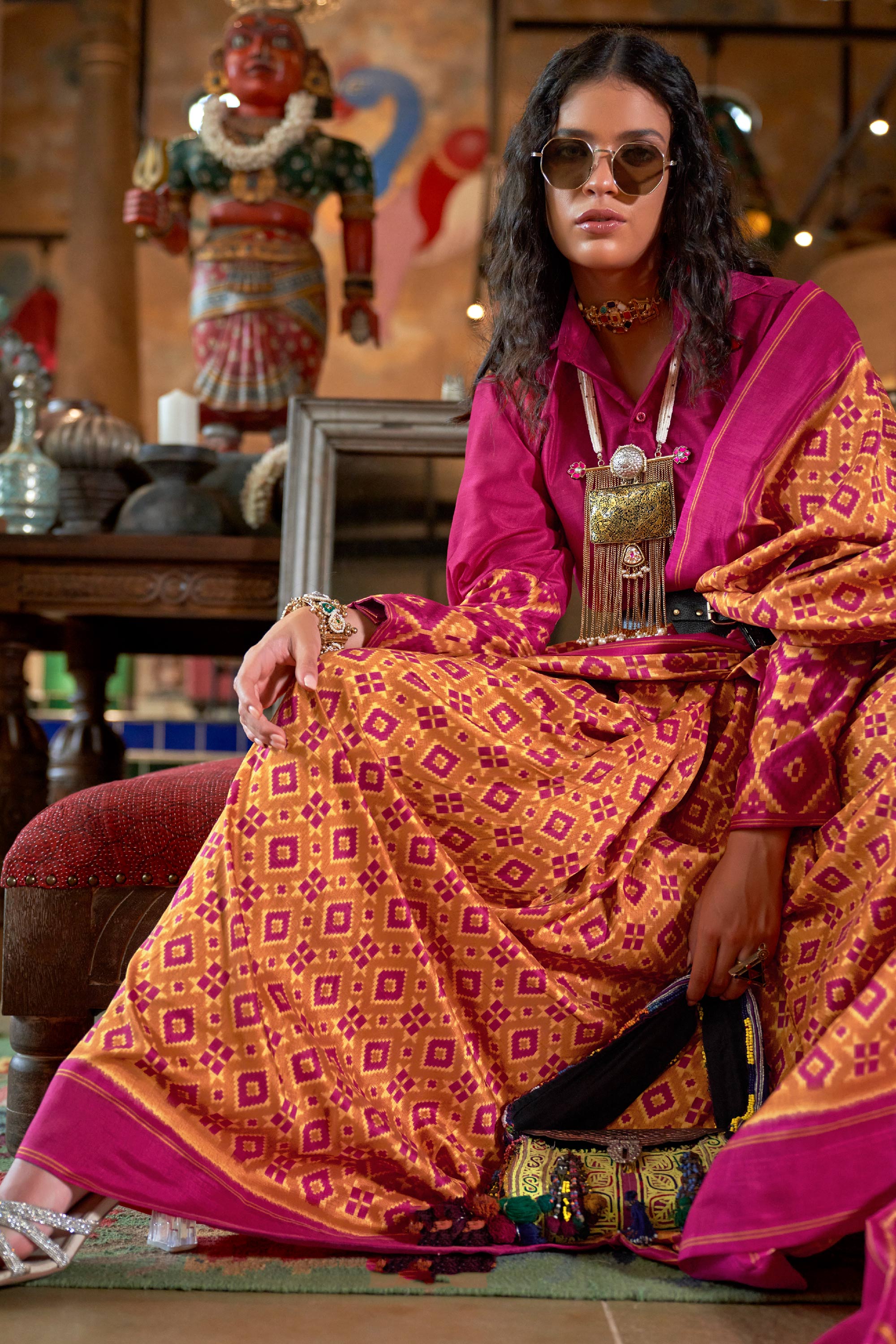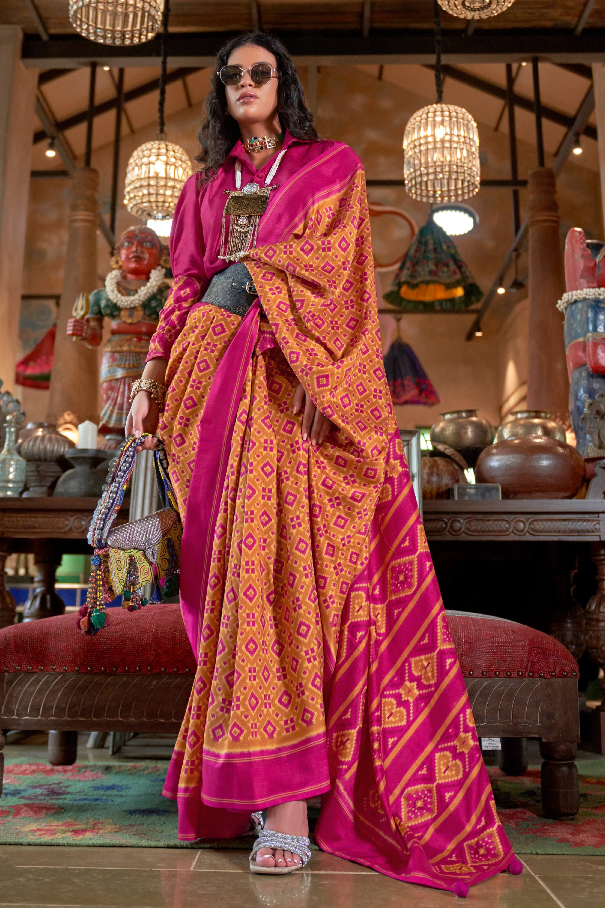 Enhance your bridal wardrobe with this luxurious Art Silk Designer Saree. Crafted with precision, its Patola-inspired prints bring traditional elegance into modern fashion. The vibrant colors and fine texture make it an ideal choice for weddings, parties, and festive celebrations. The unstitched blouse included allows for a personalized and tailored design to complete your ensemble. This saree seamlessly combines cultural richness with contemporary sophistication for an unforgettable look.