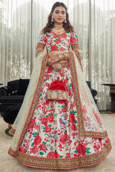 White Color Art Silk Fabric Divine Digital Printed Lehenga Choli