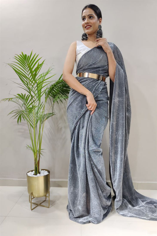 $21.25 USD$42.50 USD Original Price Save 50%/ Grey Premium Crepe Silk School Uniform SareeSave 50%