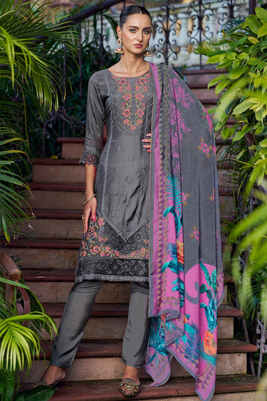 Festive Wear Muslin Fabric Salwar Suit In Grey Color