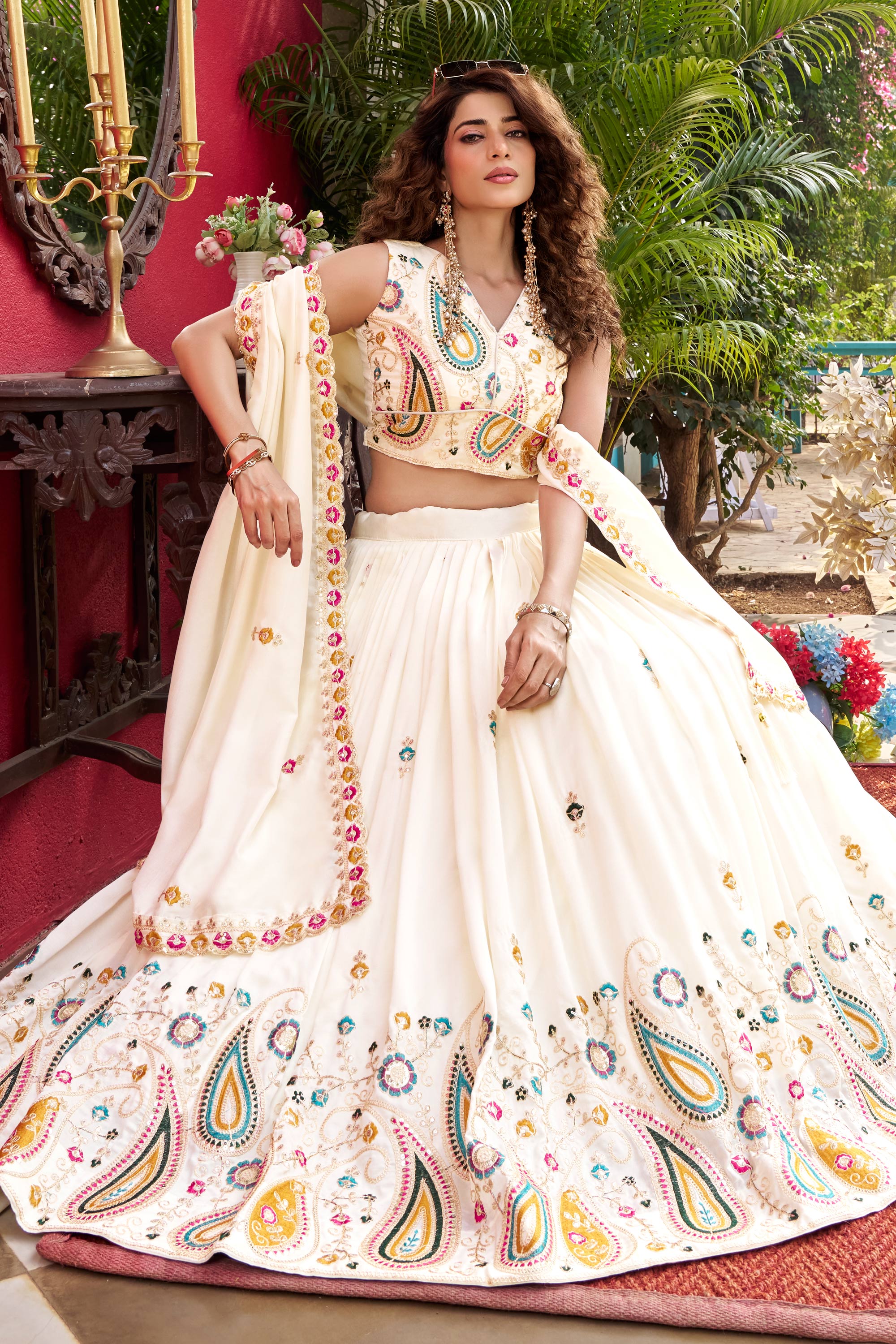 Add traditional charm to your festive wardrobe with this stunning Readymade Designer Lehenga Choli. Made using art silk fabric for the lehenga and blouse, along with a coordinated art silk dupatta, it ensures elegance and comfort. Featuring refined embroidery detailing and a rich color tone, this set is suitable for Sangeet, functions, and festive occasions. Note: Due to digital photography, slight color variations may occur.