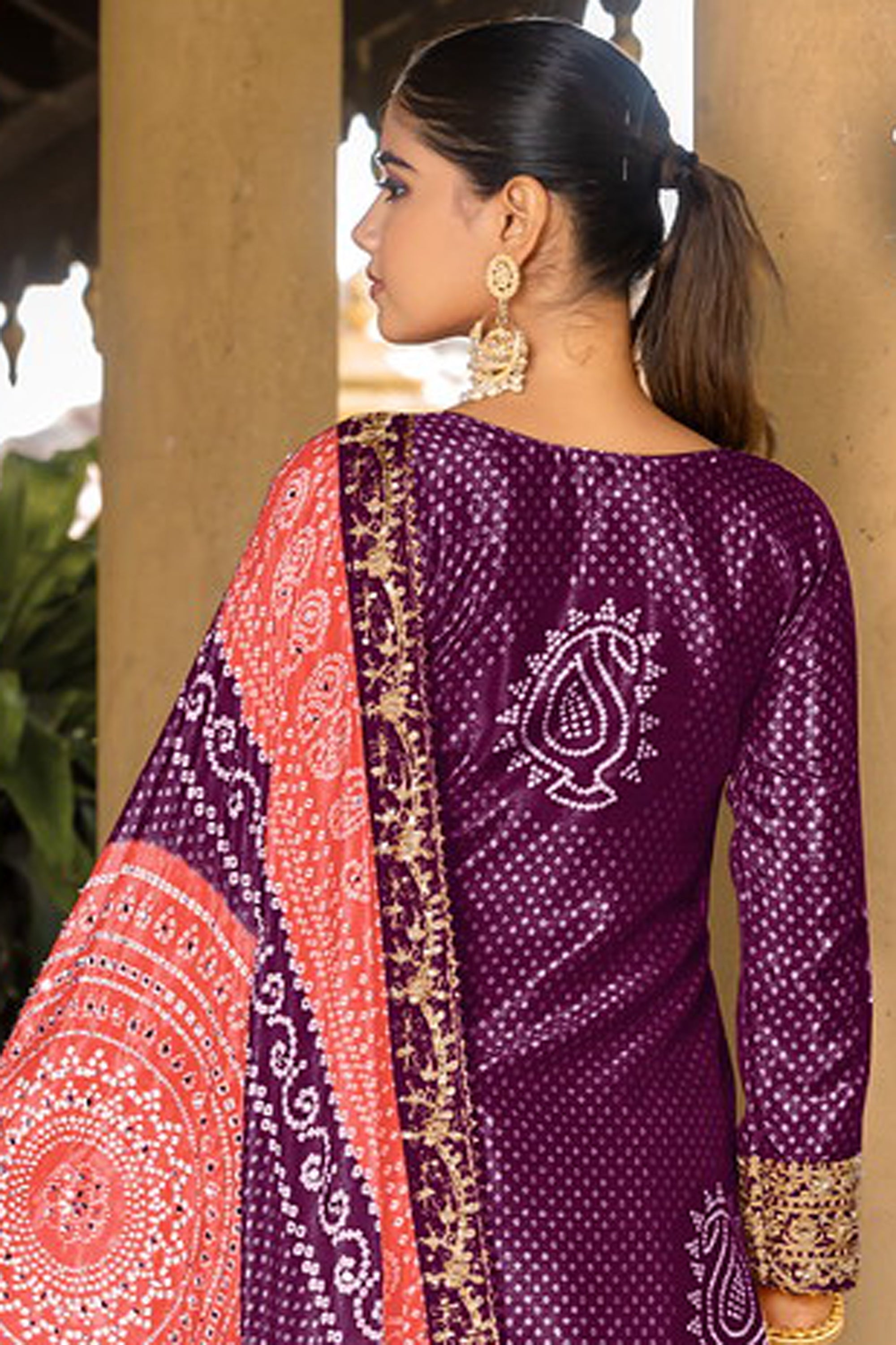 Bandhani Print Chinon Purple Readymade Palazzo Suit