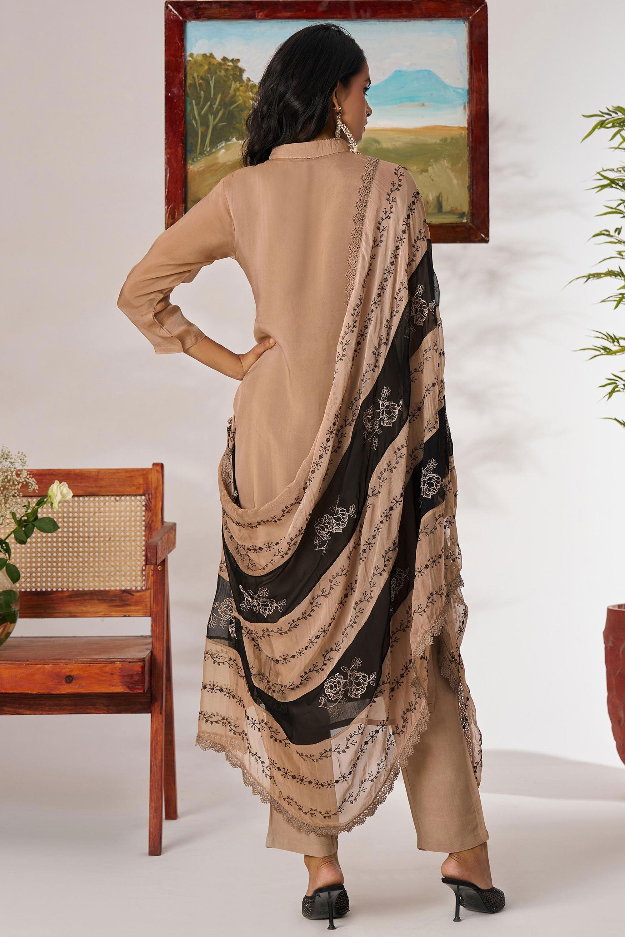 Beige Organza Embroidered Readymade Straight Cut Salwar Kameez