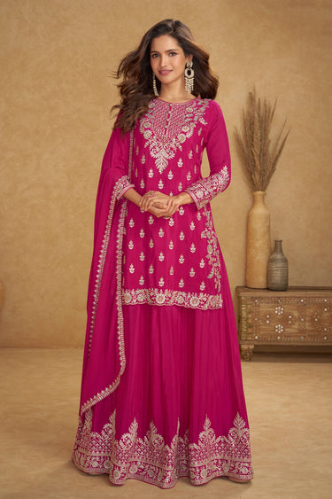Embroidered Chinon Rani Readymade Palazzo Suit For Sangeet Wear