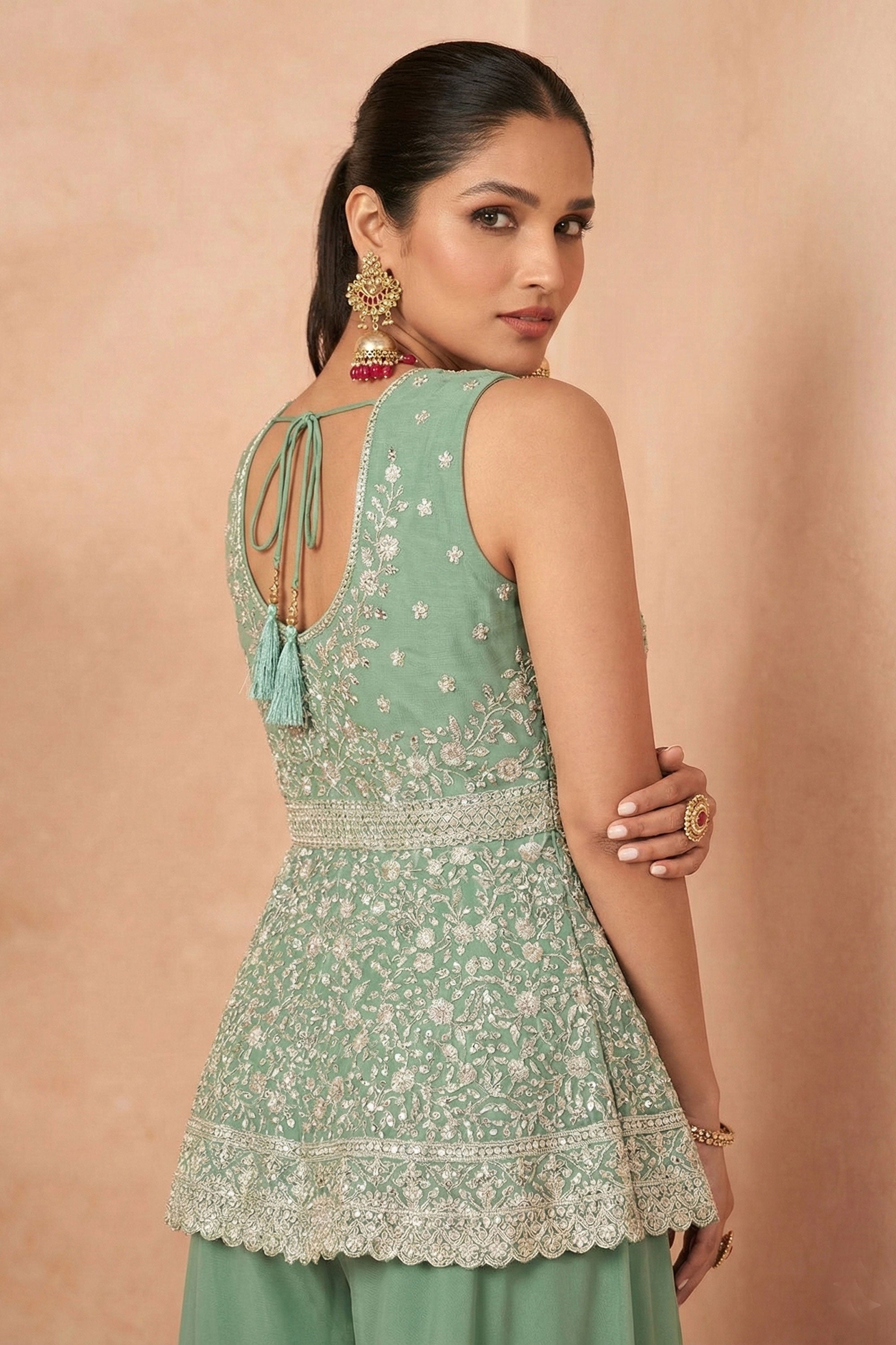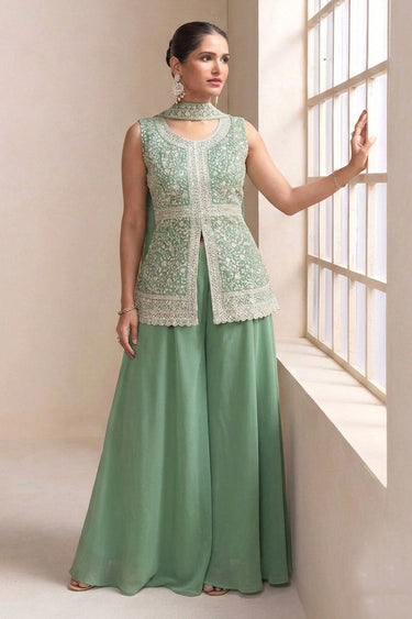 Excellent Georgette Fabric Sea Green Color Readymade Palazzo Suit