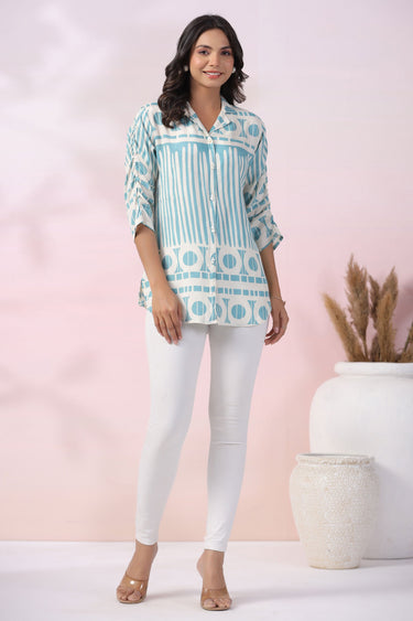 Exclusive Light Blue Abstract Print Russian Silk Tunic
