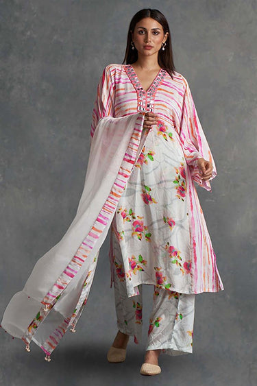 Exclusive White Crepe Fabric Printed Festive Wear Stylish Palazzo Kurta Set