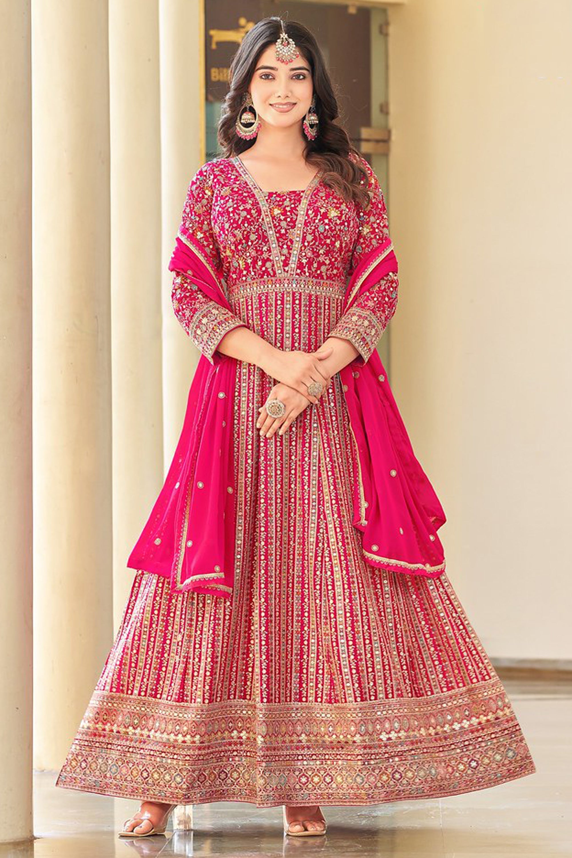 Step into elegance with this Vibrant Embroidered Readymade Anarkali Salwar Suit made from premium georgette fabric. Featuring exquisite embroidery and a flattering silhouette, this outfit is perfect for weddings, festive occasions, and cultural events. The lightweight georgette ensures comfort, while the intricate detailing adds sophistication. The Anarkali style flows gracefully, offering both style and functionality. Available in multiple sizes, it comes pre-stitched for your convenience, so you can look your best without hassle. Pair it with matching accessories and heels to complete your chic ethnic look.