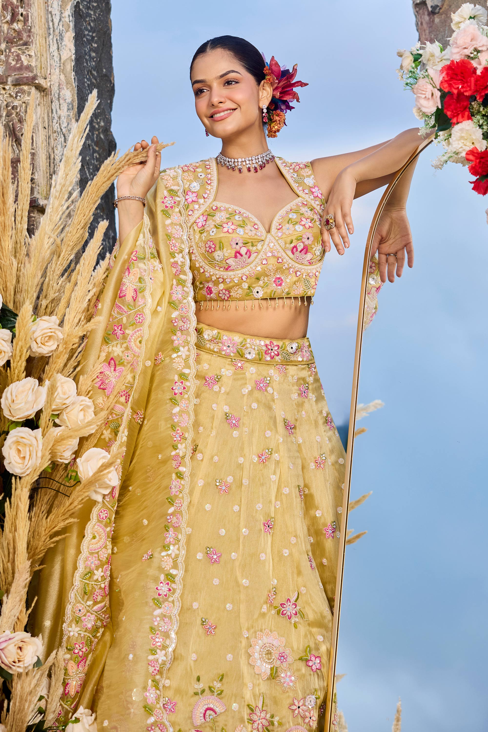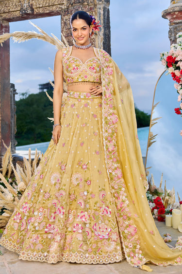 Yellow Wedding Wear Embroidered Organza Lehenga Choli