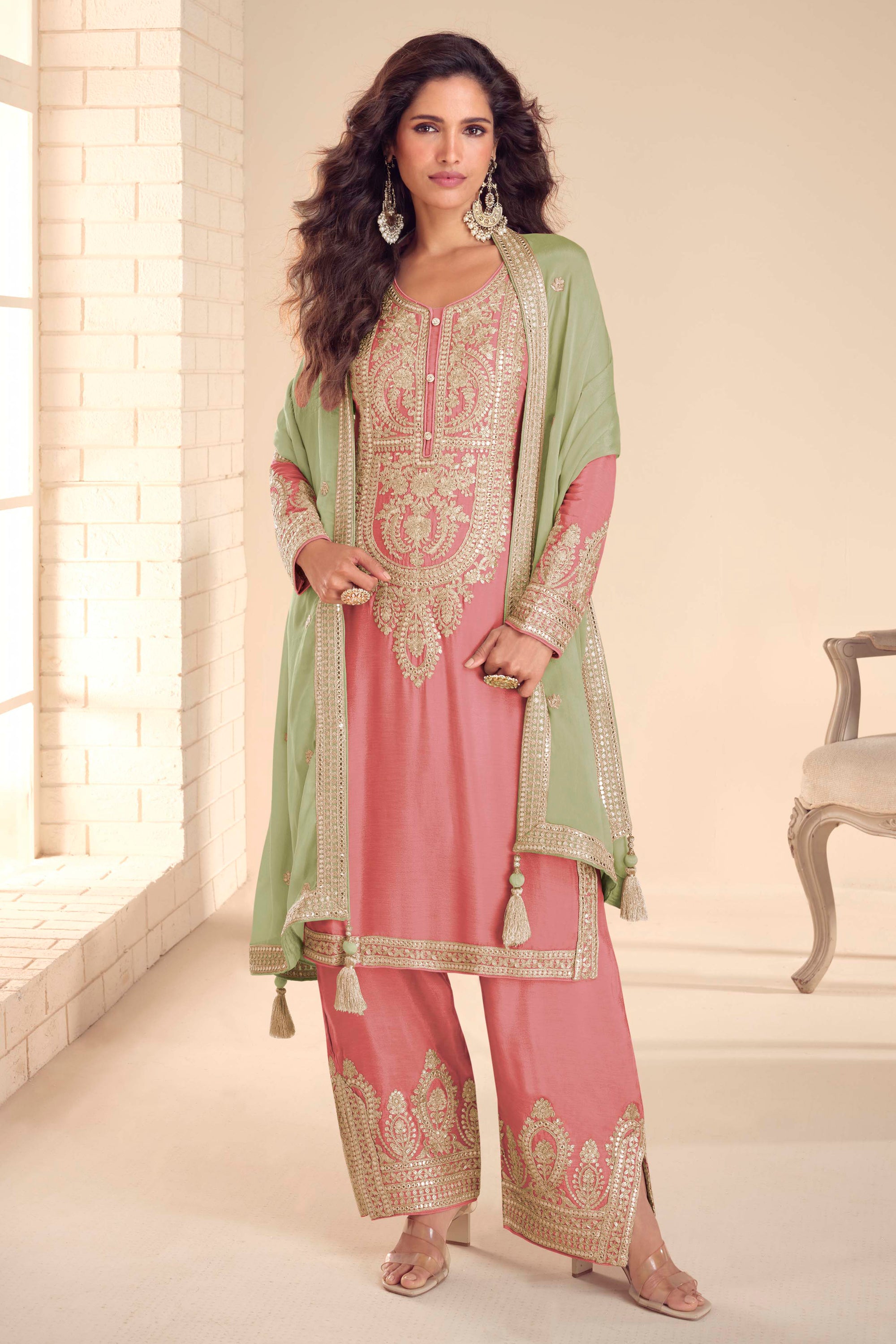 Bring elegance and tradition to your wardrobe with our Designer Chinon Embroidered Salwar Kameez. Made from premium-quality Chinon fabric, this outfit boasts intricate embroidery that reflects timeless artistry. Perfect for weddings, festive celebrations, or formal gatherings, its lightweight and breathable fabric ensures both style and comfort. The suit comes with a matching dupatta to complete the classic look. Whether you pair it with traditional jewelry or modern accessories, this salwar kameez guarantees a sophisticated statement. Elevate your ethnic fashion collection today with this stunning piece!