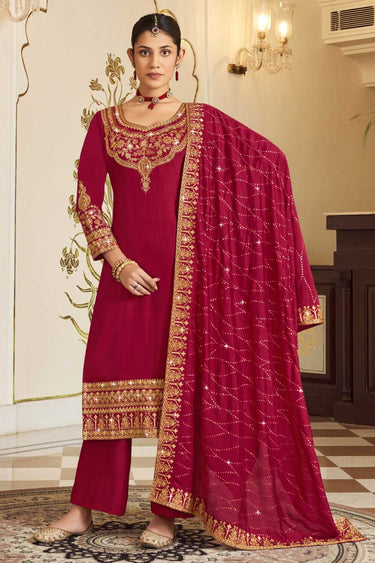 Classic Pink Color Pakistani Replica Suit In Vichitra Fabric