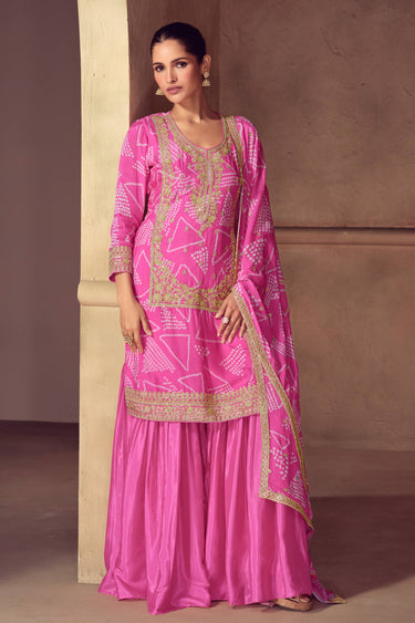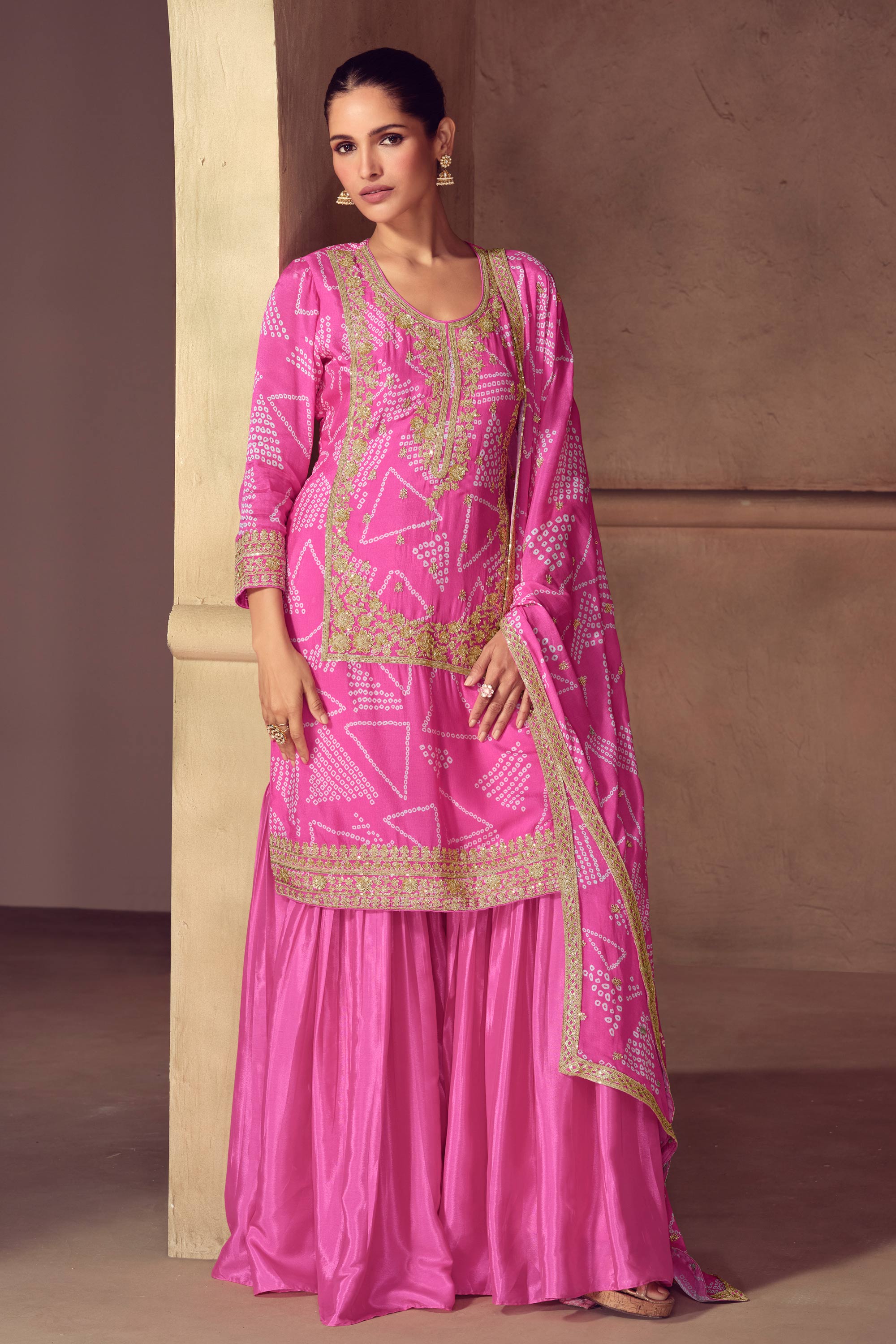 Embroidered Pink Chinon Readymade Sharara Salwar Kameez