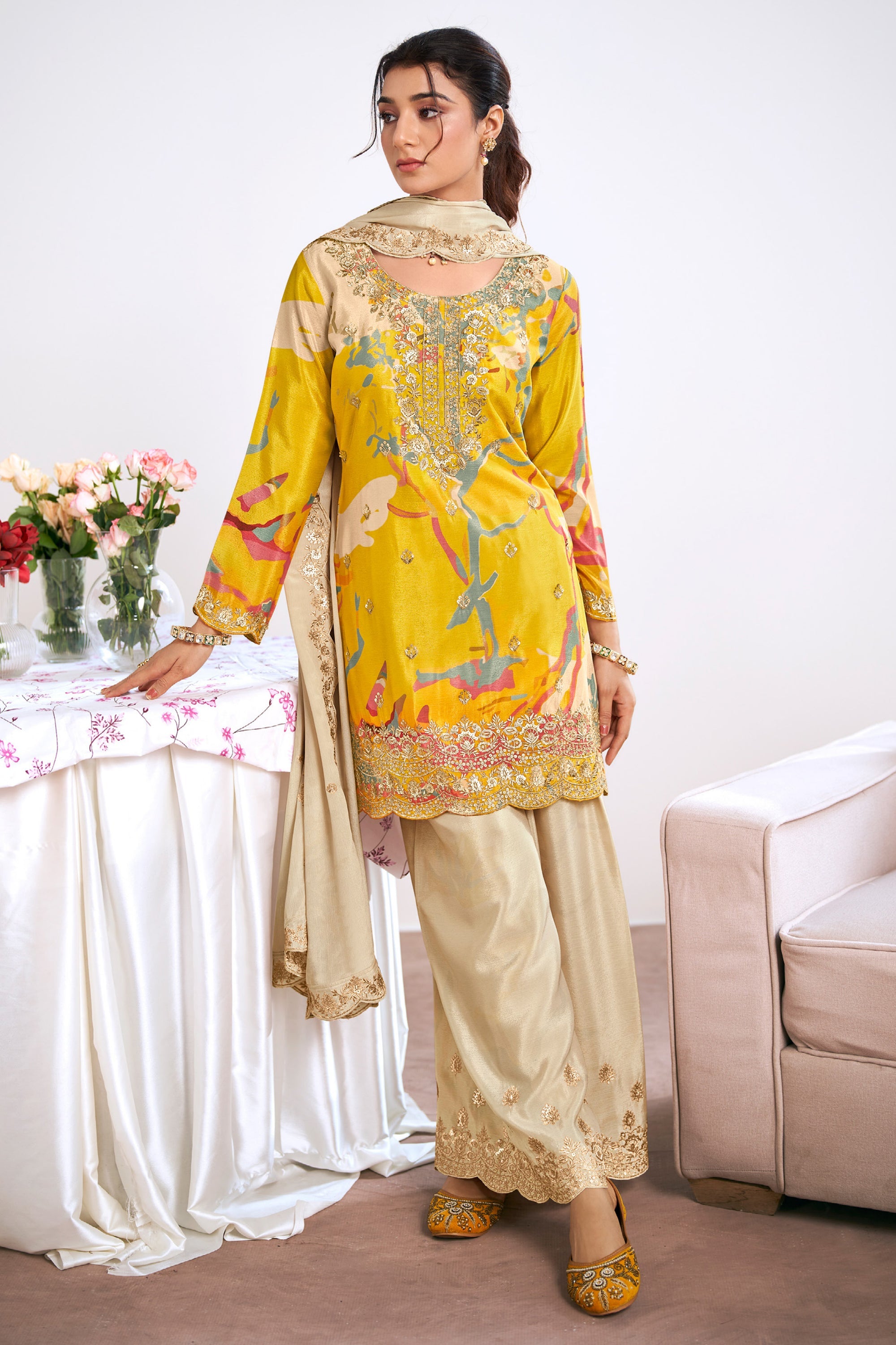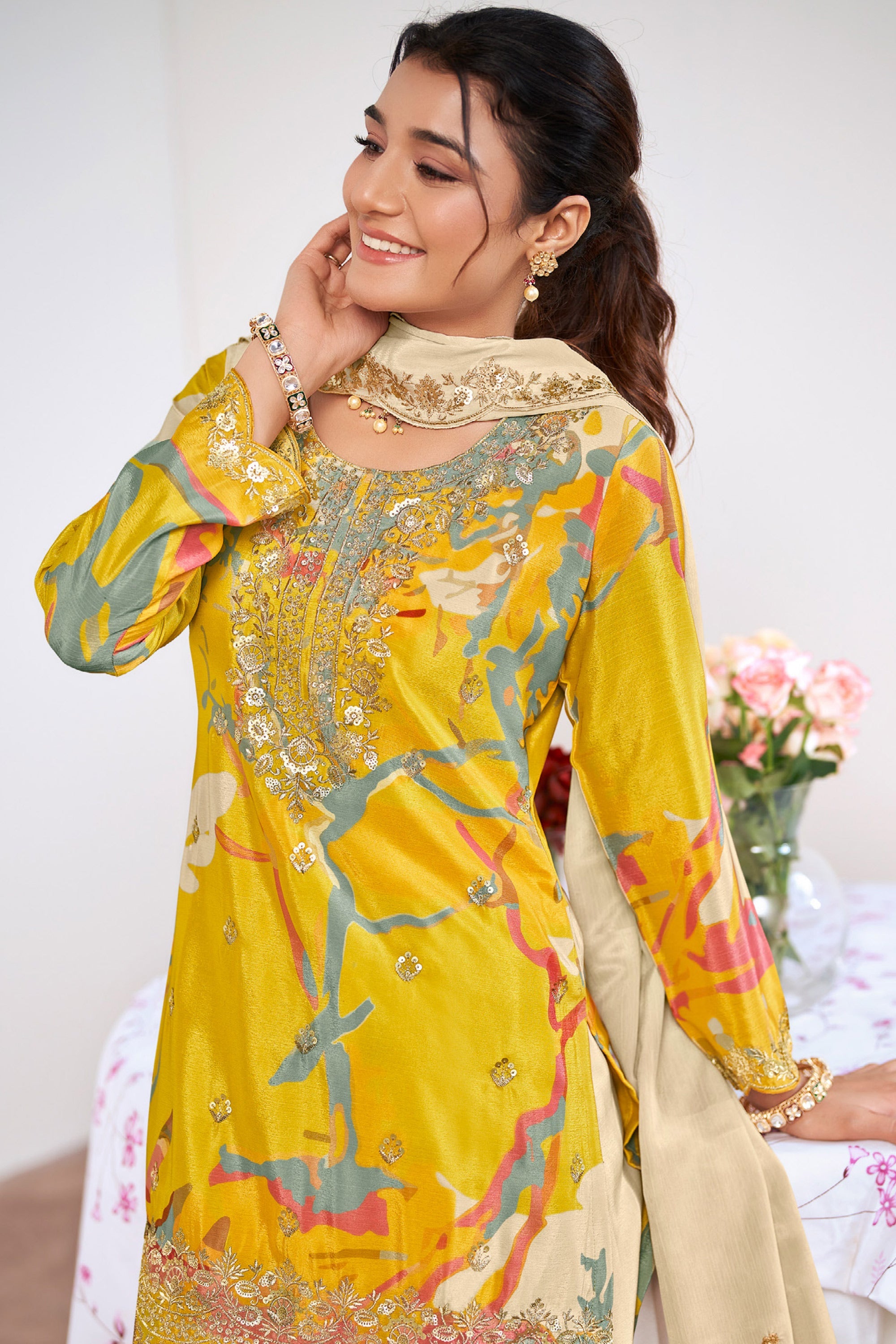 Embroidered Yellow Readymade Palazzo Salwar Suit